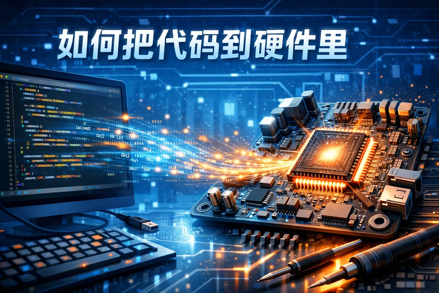 将代码输入硬件是通过编译生成机器码,并借助接口将二进制程序写入芯片或设备存储介质的过程,核心包括代码编写、交叉编译、生成烧录文件、连接硬件、烧录程序与调试验证等步骤。不同硬件如单片机、嵌入式系统或工业设备在写入方式上存在差异,但本质都是将人类可读代码转换为硬件可执行指令。随着远程升级与自动化部署的发展,硬件代码管理正向智能化与体系化方向演进。