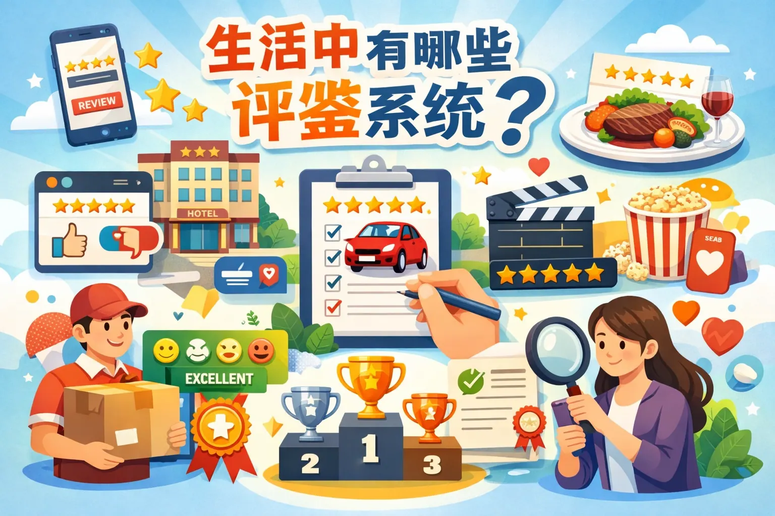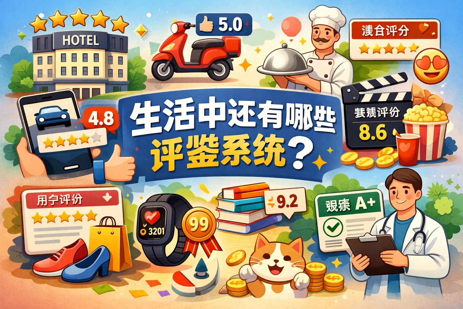 生活中的评鉴系统广泛存在于教育、信用、消费、医疗、产品质量、职业资格、企业绩效与社会治理等领域,其核心在于通过标准化与量化机制帮助个人与组织提升决策效率与公平性。文章系统梳理了不同类型评鉴体系的结构、特点与应用场景,并分析其优势与局限,指出未来评价体系将向数据化、智能化、多维度与透明化方向发展,同时强调理性看待分数与等级的重要性。