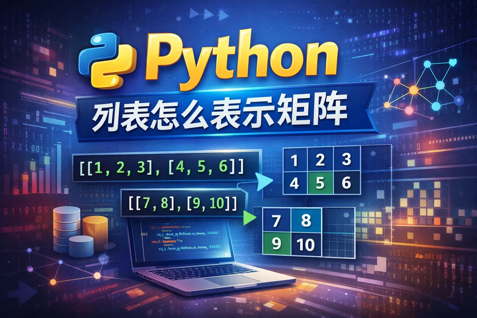 在 Python 中表示矩阵最常见的方法是使用列表嵌套列表结构,每个内部列表代表矩阵的一行,通过双重索引访问元素。这种方式简单直观,适合教学和基础算法练习,但不具备高性能数学运算能力。在需要进行复杂数值计算时,更推荐使用专业数组结构以获得更高性能与更丰富的运算支持。理解不同表示方式的差异,有助于根据应用场景选择合适的数据结构。