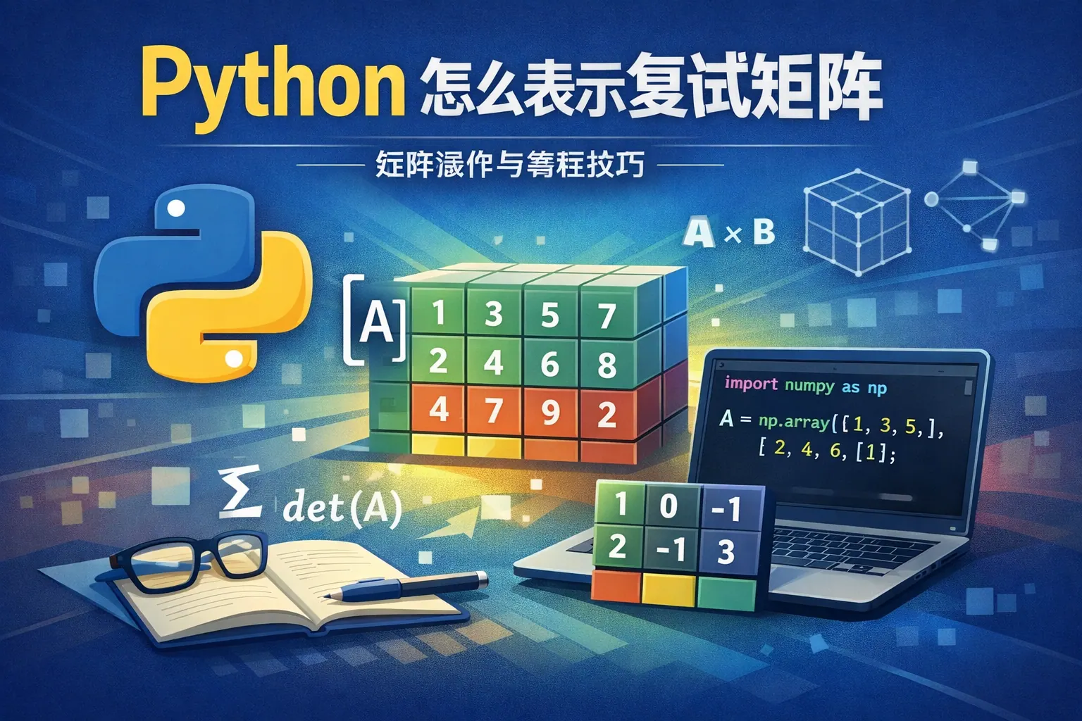 Python 表示复数矩阵主要有两种方式:使用内置 complex 类型配合嵌套列表,或使用 NumPy 创建带有 complex64、complex128 等数据类型的数组。其中 NumPy 是更推荐的方法,因为它支持高效矩阵运算、线性代数函数和科学计算场景。复数矩阵广泛应用于信号处理、工程计算和科研领域,合理选择数据类型可以优化性能与内存使用。