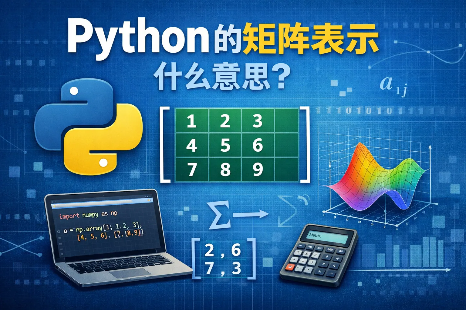 Python中的矩阵表示是指用特定数据结构来存储和操作二维数据,常见方式包括列表嵌套、NumPy多维数组以及稀疏矩阵结构。其中NumPy的ndarray是当前最主流且推荐的实现方式,具备高性能计算与完整线性代数支持,广泛应用于数据分析与科学计算。理解矩阵表示的核心在于掌握不同结构的性能差异与应用场景,从而根据数据规模和计算需求选择合适方案。