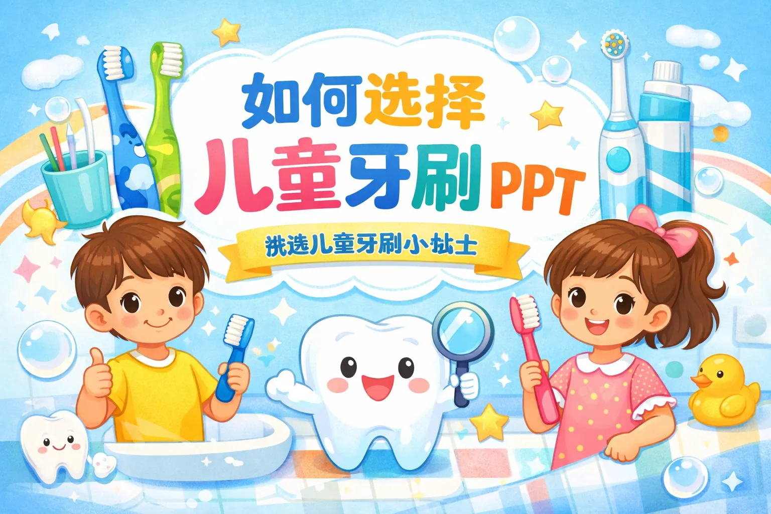 选择儿童牙刷制作PPT时,应围绕年龄匹配、刷头大小、刷毛软硬度、安全认证及电动与手动对比五大维度展开,并结合权威机构建议与真实产品案例进行说明。儿童牙刷应以软毛、小刷头为基本原则,根据不同年龄阶段科学选择,同时关注更换周期与使用习惯培养。结构清晰、图表化表达与权威引用是提升PPT专业度与说服力的关键。