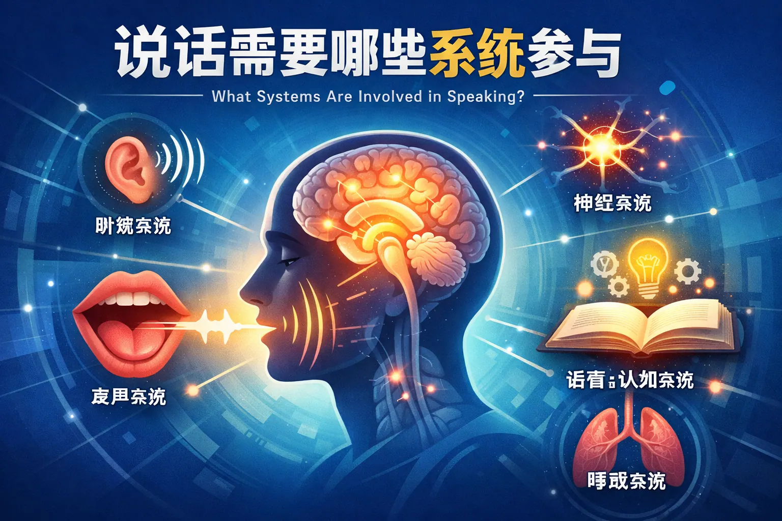 说话是一个多系统协同的复杂生理过程,涉及神经系统的语言规划与控制、呼吸系统的气流支持、喉部声带的振动发声、口腔鼻腔的共鸣放大、舌唇牙齿的精细构音以及听觉系统的实时反馈调节。大脑负责生成语言指令,肺部提供动力,声带产生基础声音,共鸣腔塑造音色,构音器官形成清晰语音,听觉系统完成闭环校正。任何一个系统功能异常,都可能导致发音不清、声音嘶哑或语言表达障碍,体现出语言表达的高度系统化特征。未来神经科学与康复技术的发展,将进一步提升对语言机制的理解与干预能力。