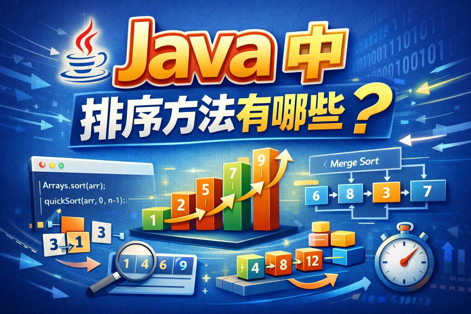 本文系统梳理了 Java 中常见的排序方法,从标准库排序、集合排序到排序规则接口与经典算法,对其设计思想、性能特征和适用场景进行了全面解析,强调在工程实践中应优先使用内置排序能力,并根据稳定性、数据规模和业务语义合理选择排序方案,同时展望了并行排序与未来发展趋势。