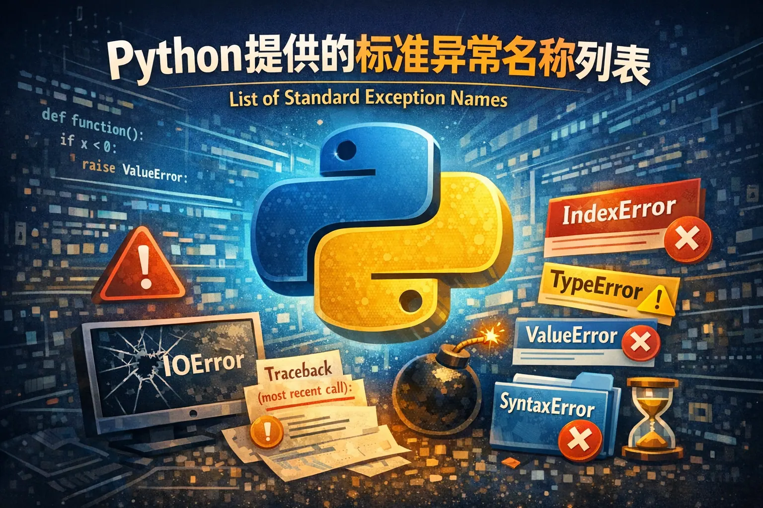 本文系统梳理了 Python 提供的标准异常名称列表及其整体结构,解释了 BaseException 与 Exception 的角色差异,并按类型、数值、算术、IO 与运行时等维度对常见异常进行了分类解析。通过继承关系表与功能分类表,帮助读者快速理解异常之间的层级与适用场景。文章还结合官方文档与经典书籍,强调捕获具体异常、避免误用顶层异常的最佳实践,并展望了 Python 异常体系在语义细化与工具协同方面的发展趋势。