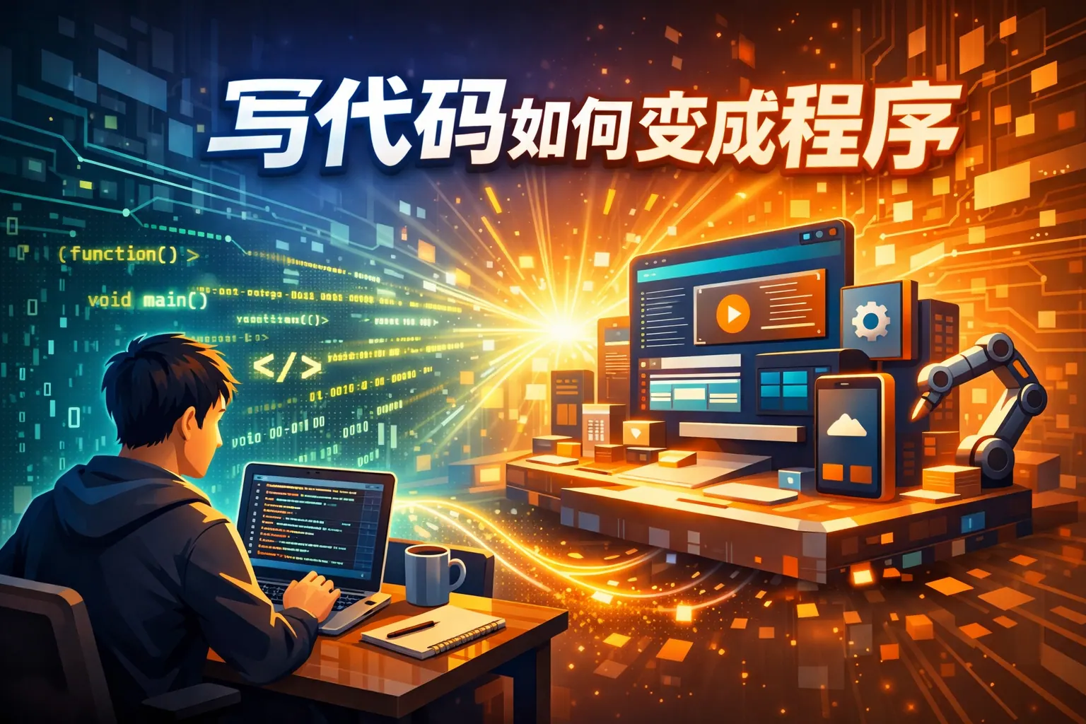 源代码要变成程序,必须经过构建、编译或解释、依赖处理、打包和部署等多个步骤。不同语言路径不同,编译型语言生成可执行文件,解释型语言通过解释器运行或生成字节码。现代软件开发已高度依赖构建工具、容器化与自动化流水线,使程序生成更加高效稳定。理解从源码到可运行系统的完整工程流程,是掌握软件开发与交付能力的关键。