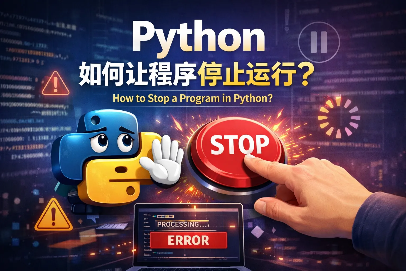 主动触发终止指令、捕获异常强制退出与系统级进程终止是让Python程序停止运行的三类核心路径,开发者可结合脚本运行场景、资源占用状态与数据完整性需求选择适配方案,主动触发终止方案兼容性较好,适合日常开发场景,异常驱动终止可保障数据安全,适用于核心业务系统,系统级终止适用于极端异常场景,需谨慎使用,未来自动化终止流程将逐步成为主流,AI辅助的终止流程优化工具也将逐步普及。