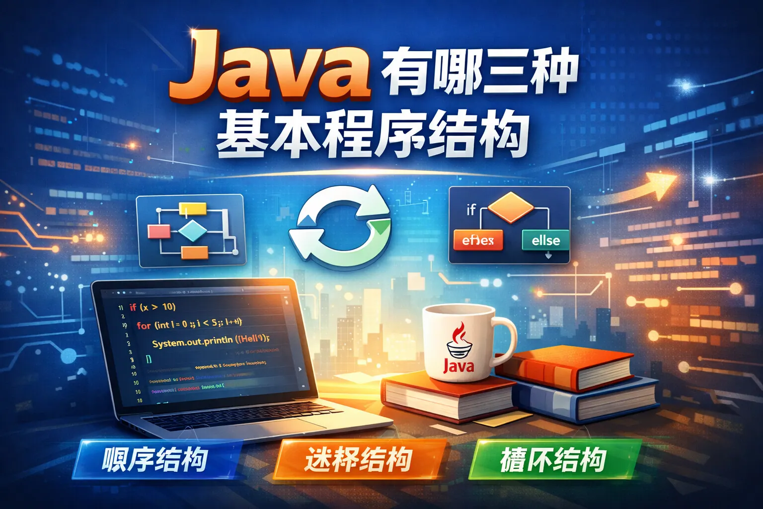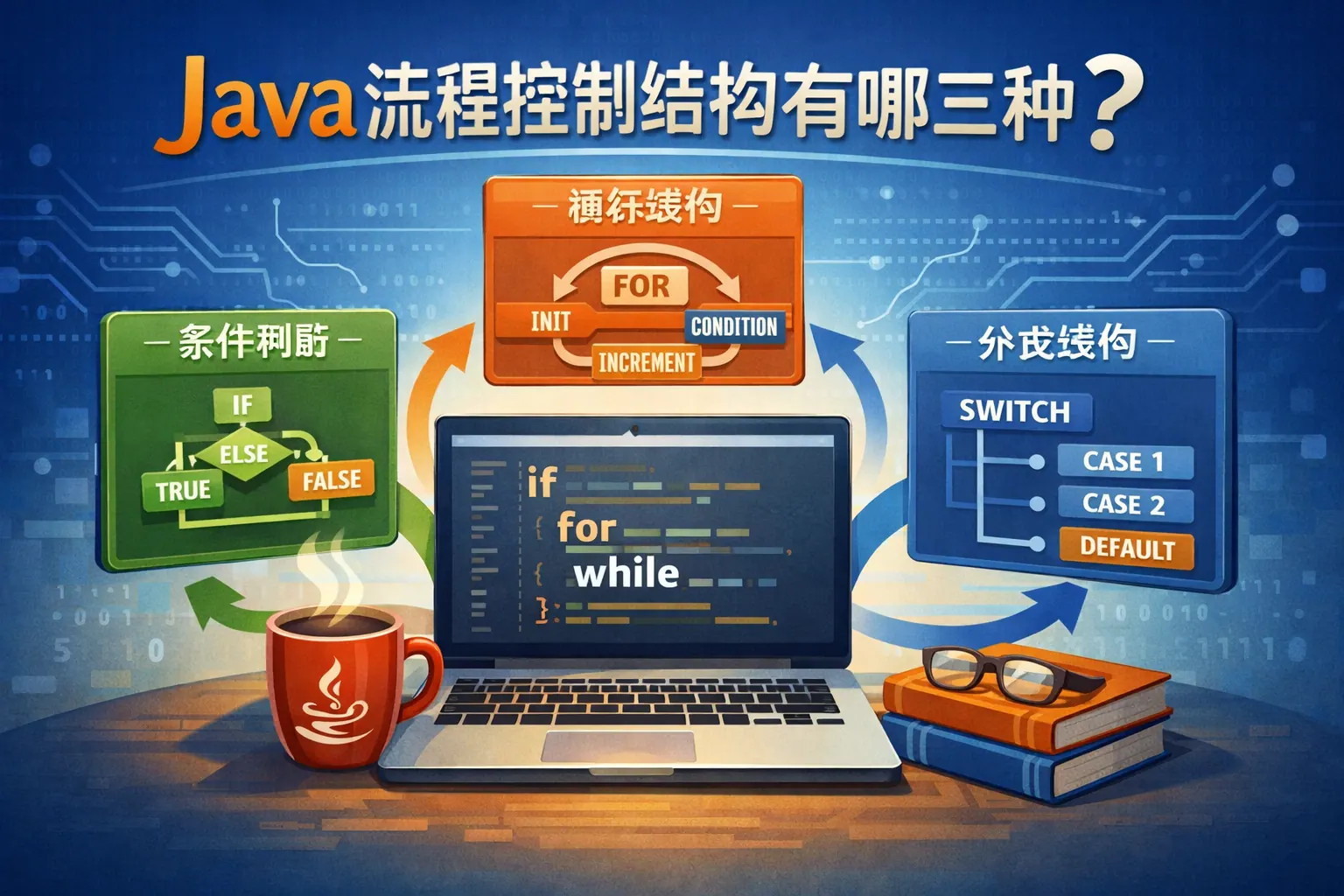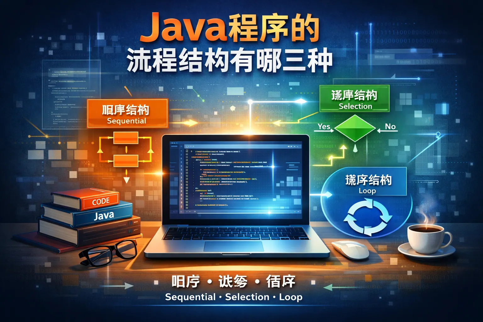 Java 程序只有三种控制结构:顺序结构、选择结构和循环结构。顺序结构决定代码按书写顺序执行,是所有程序的基础;选择结构通过条件判断控制执行路径,用于实现业务规则和分支逻辑;循环结构则在条件满足时重复执行代码,用于遍历和批量处理。任何复杂的 Java 程序,本质上都是这三种控制结构的组合与嵌套。理解它们的特点、使用场景以及对可读性的影响,是从入门到进阶编写高质量 Java 代码的关键。