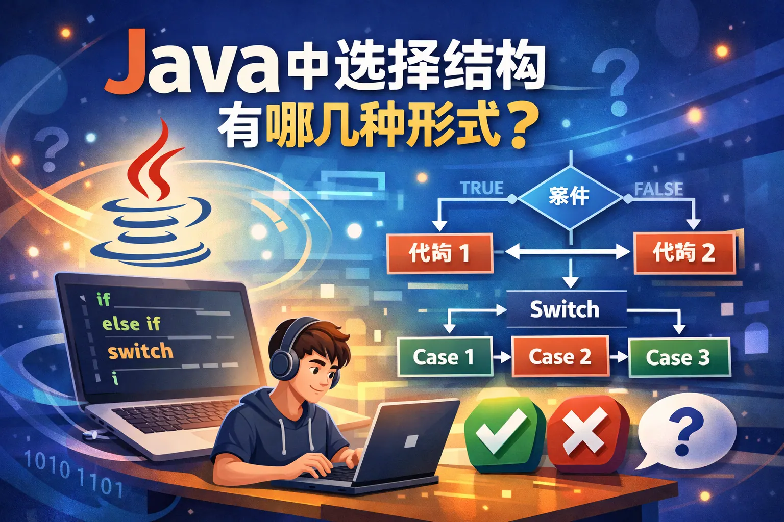 Java 中的选择结构包括 if 单分支、if-else 双分支、if-else if-else 多分支、switch-case 结构以及条件运算符 ?:。它们分别适用于从简单条件判断到多值分流的不同场景,是控制程序执行流程的核心机制。合理选择不同形式的选择结构,有助于提升代码可读性、可维护性与长期演进能力。