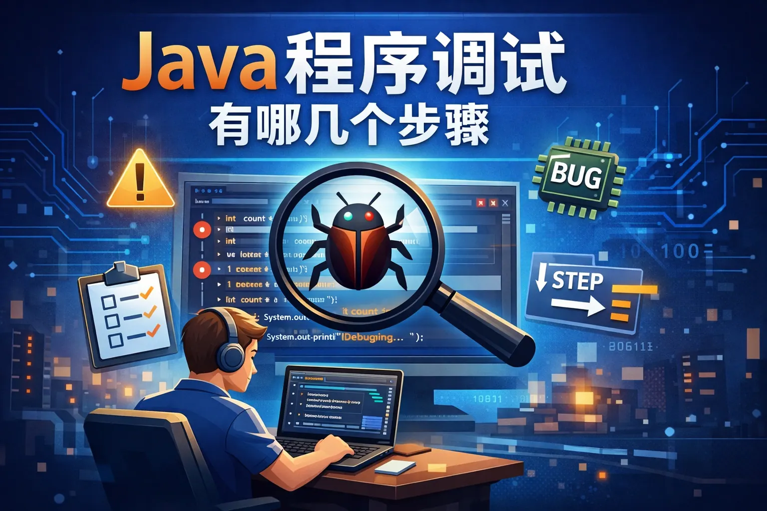Java 程序调试通常包括明确问题并稳定复现、核对运行环境、进行静态代码分析、借助日志和异常信息定位线索、使用调试器进行动态调试、对比预期行为与实际结果、定位根本原因并修改代码、执行回归测试以及总结经验优化流程等步骤。完整的调试过程强调先分析再修改,避免盲目试错,通过系统化方法降低排查成本并提升代码质量,同时为后续开发积累可复用的调试经验。
