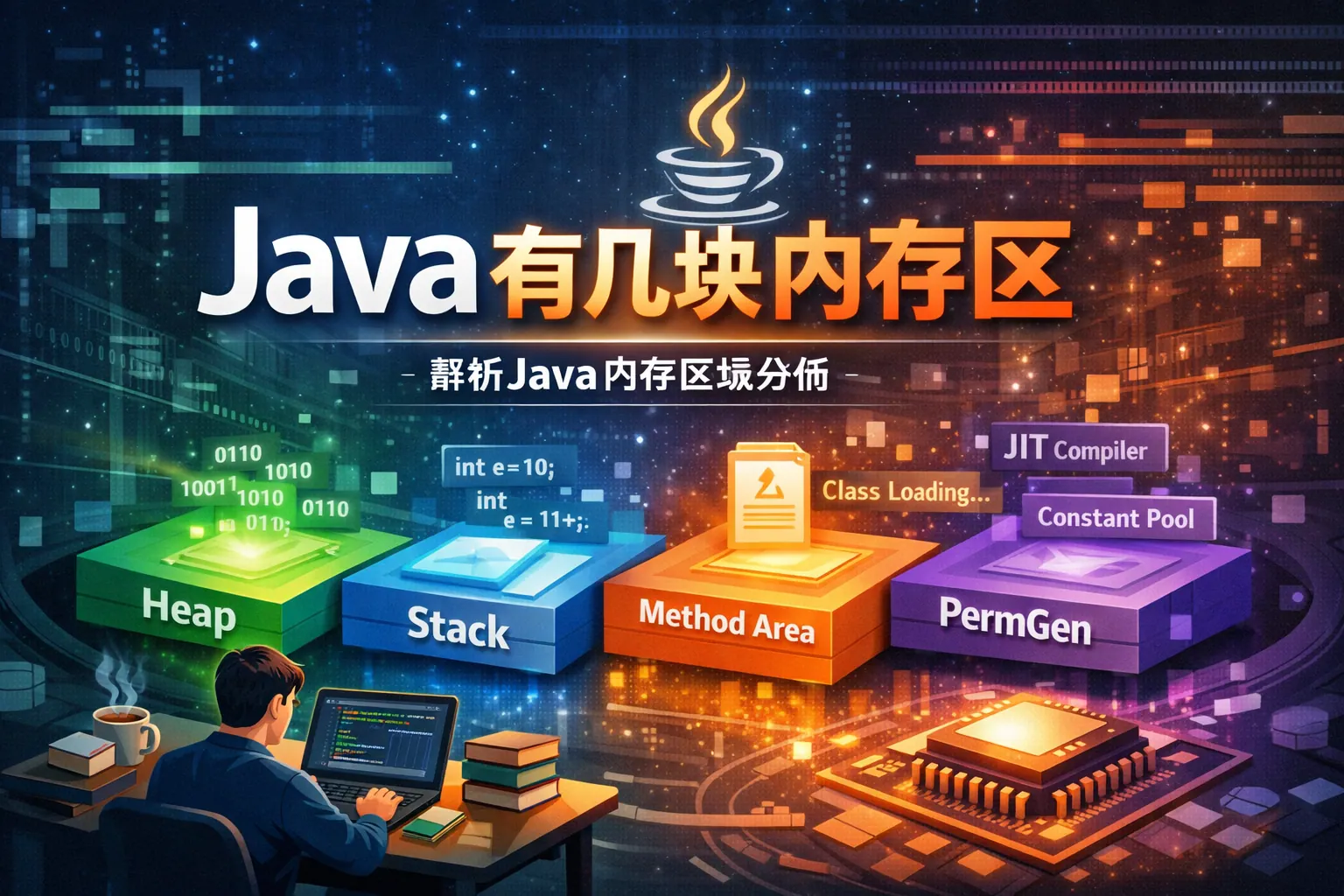 本文系统回答了“Java 有几块内存区”这一问题,从 JVM 规范角度明确指出 Java 运行时内存主要由五大区域构成,并深入解释了每个内存区的职责、线程关系与常见异常。通过对程序计数器、虚拟机栈、本地方法栈、Java 堆和方法区的完整解析,帮助读者建立对 Java 内存结构的整体认知,为性能调优与问题排查打下基础。