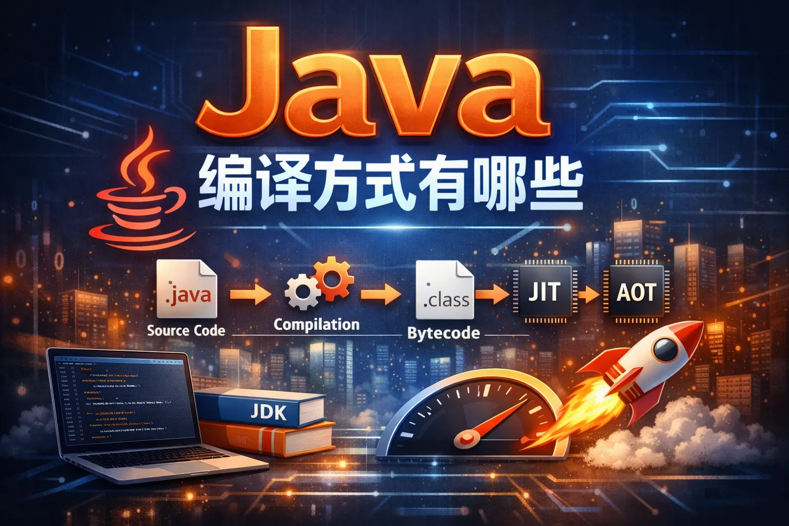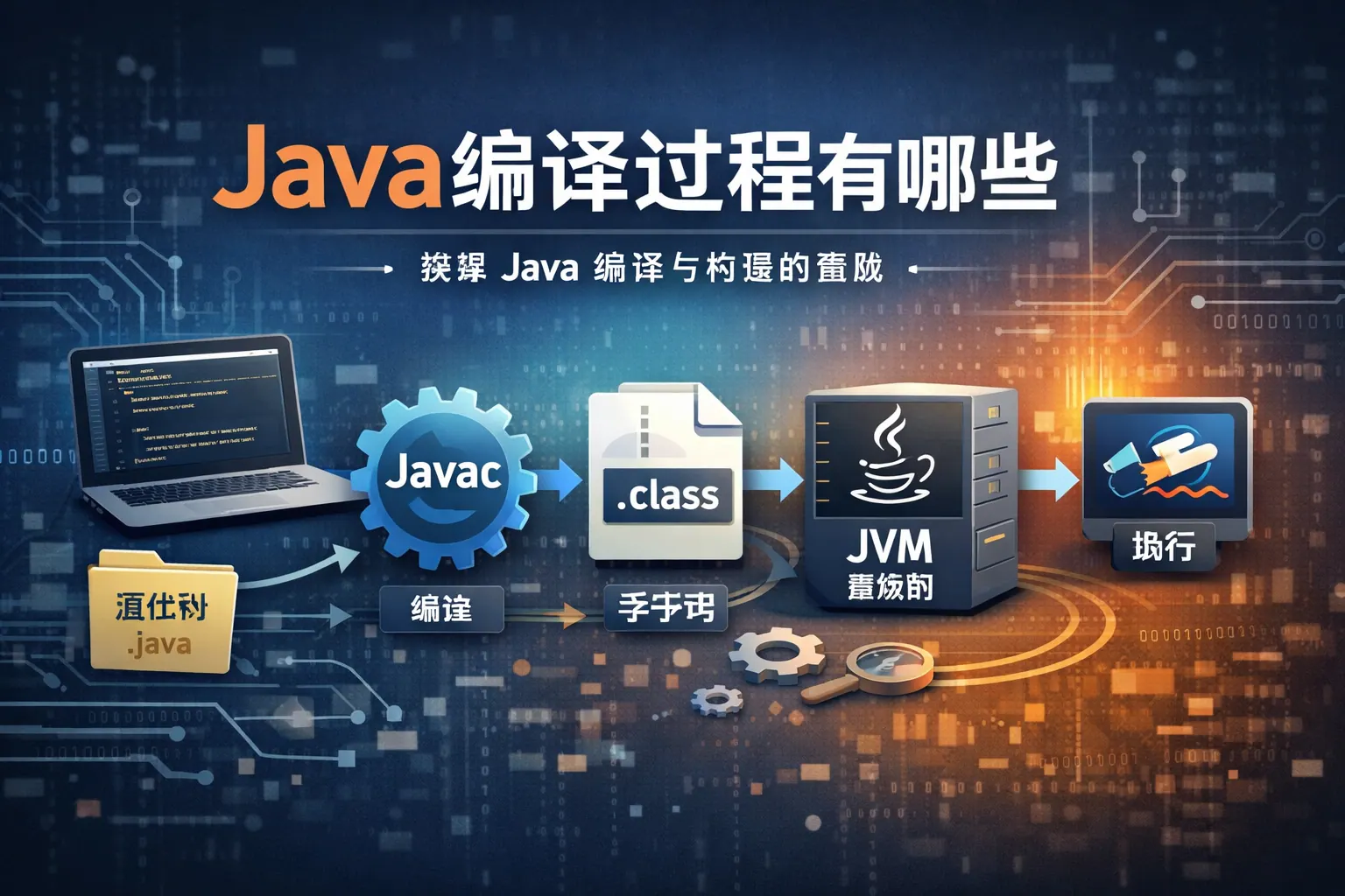 Java 编译过程并不是简单的源码转机器码,而是由源码编译、字节码生成、类加载以及运行期解释与即时编译共同组成的多阶段体系。通过词法分析、语法分析和语义分析,Java 编译器在编译期保证代码的正确性;通过字节码和 JVM,Java 实现了跨平台运行;再借助运行期的解释执行与即时编译机制,逐步提升程序性能。这种静态与动态相结合的编译模型,是 Java 长期稳定、高效运行的核心基础。
