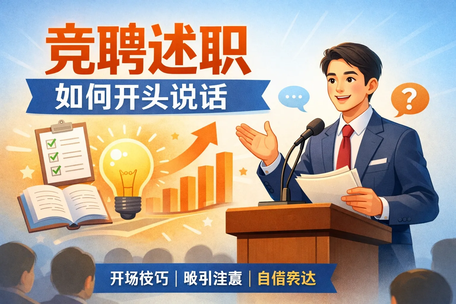 本文围绕竞聘述职开头搭建完整实战方法论,结合权威行业报告数据分析评委注意力阈值与评分权重,拆解三类职场场景的定制化开头话术模板,梳理三大高频失分误区及避坑方案,分享实用优化技巧与落地执行清单,帮助竞聘者快速抓住评委注意力,建立专业可靠的第一印象,提升竞聘成功率。