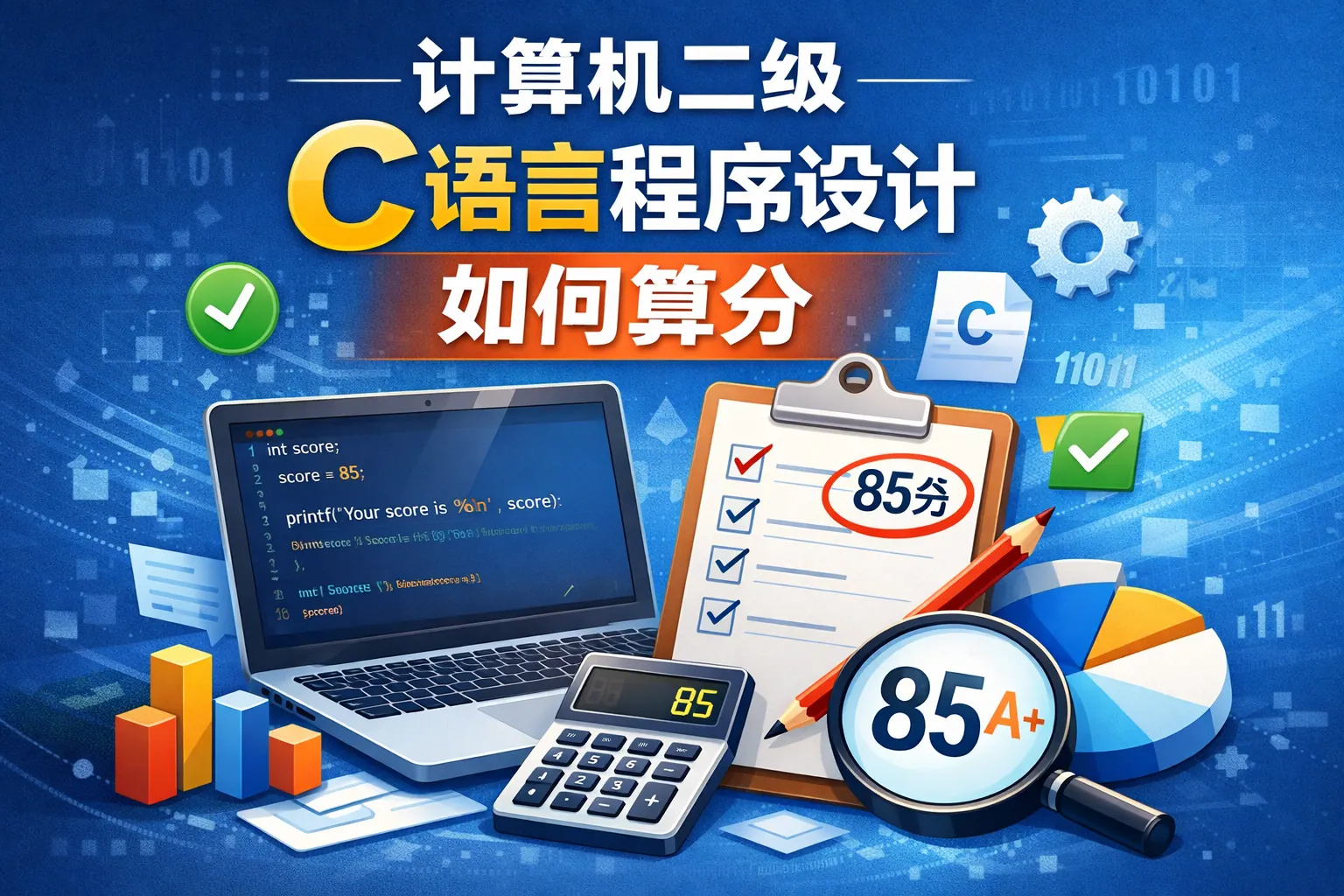 计算机二级C语言程序设计实行百分制评分,60分及格,选择题约20分,上机操作题约80分,其中程序设计题占比最高。考试采用自动评分机制,通过测试用例数量决定得分比例,无法编译则基本无分。考生应重点保障程序可运行,重视输出格式与边界条件处理,合理分配时间,确保在高分值的程序设计题上获得足够分数,才能稳定通过考试。未来考试更强调实际编程与综合应用能力。