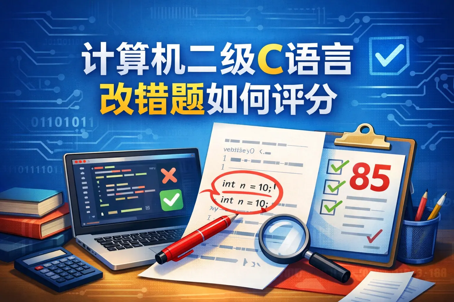计算机二级C语言改错题采用机评方式,按错误点逐项给分,每改对一处即可获得对应分值,但必须与标准答案语法和逻辑完全匹配。评分强调程序可编译性和整体逻辑正确性,存在连带失分情况。常见错误集中在变量类型、函数声明、循环条件和指针使用等基础语法层面。理解评分机制、掌握高频错误类型并使用标准表达,是提升改错题得分率的关键。未来评分可能更智能,但按点给分和语法规范仍是核心原则。