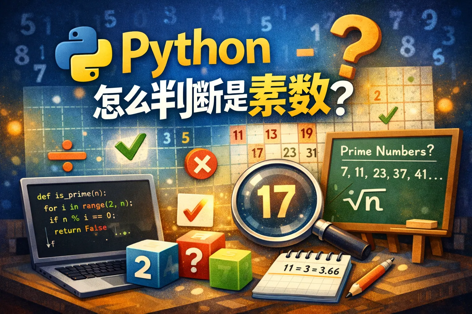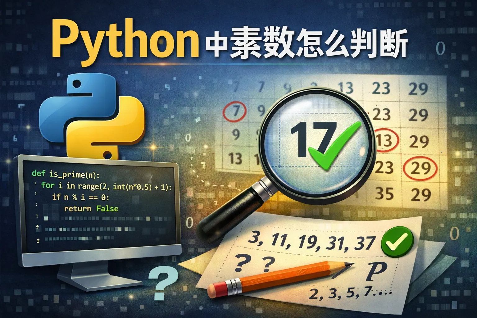 本文系统讲解了如何使用 Python 识别质数,包括基础循环判断、平方根优化方法以及埃拉托斯特尼筛法,并对不同算法的时间复杂度与适用场景进行了对比分析。同时介绍了借助数学库进行高精度判断的方式,并结合权威资料说明质数在密码学和算法设计中的重要意义,帮助读者根据实际需求选择合适的质数识别方案。