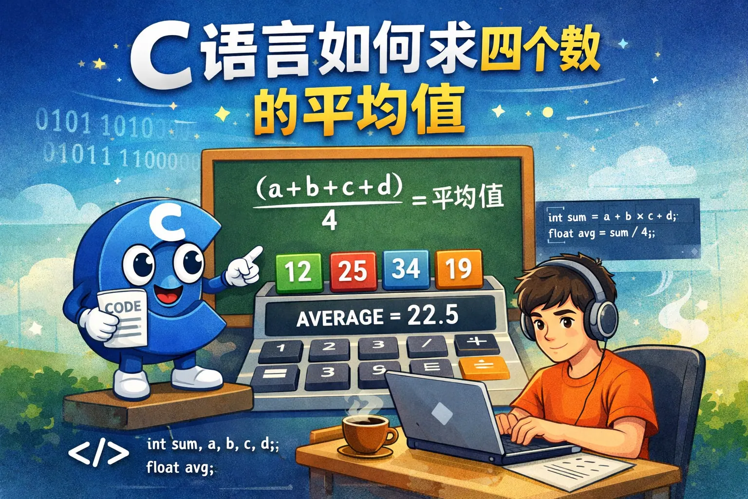 c语言如何求四个数的平均值
