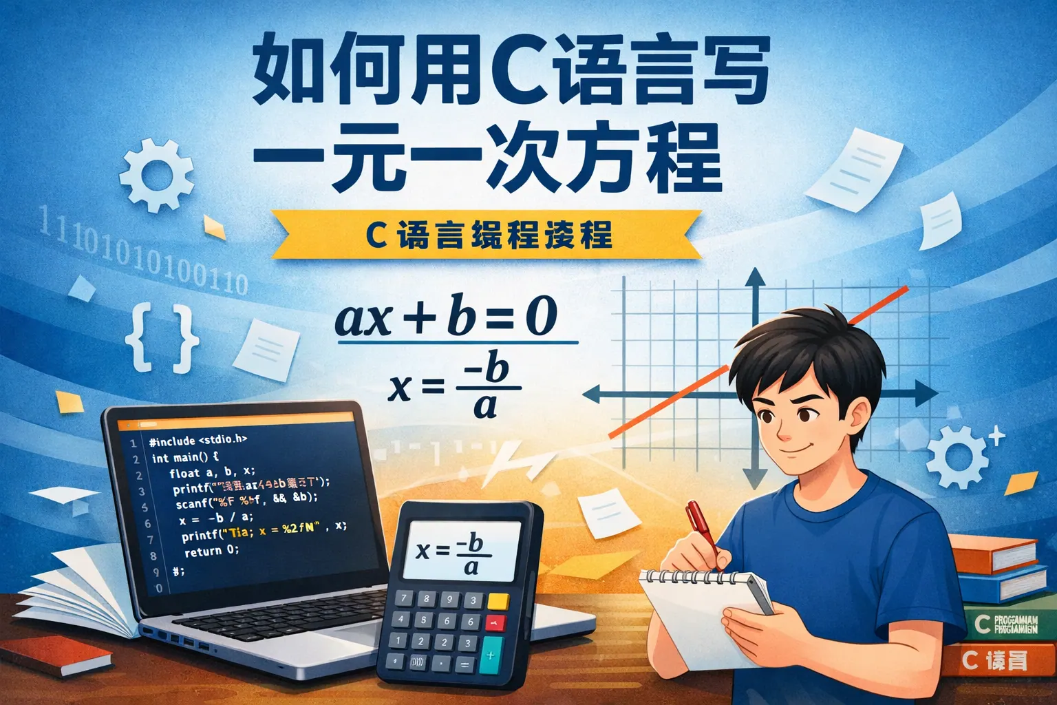 本文系统讲解了如何用C语言编写一元一次方程求解程序,核心方法是根据数学公式x=-b/a进行计算,并对a=0的特殊情况进行分类处理。文章从数学原理、代码实现、输入输出函数、浮点精度问题、函数封装、循环扩展及常见错误调试等多个方面深入解析,帮助读者不仅掌握基础写法,还能写出结构清晰、健壮性强的C语言程序。同时结合权威标准说明浮点计算原理,为进一步学习数值计算与算法开发打下基础。