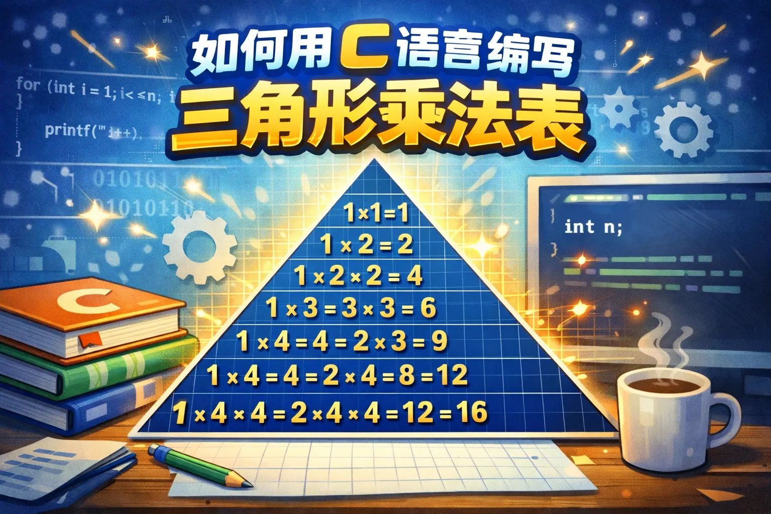 本文系统讲解了如何使用 C 语言编写三角形乘法表,核心在于通过嵌套循环控制行列关系,并利用格式化输出实现整齐排列。文章详细解析了下三角与上三角结构的实现逻辑,对比了不同循环方式与格式控制技巧,并结合标准文档说明编程规范。通过掌握循环边界与输出对齐方法,可以灵活实现多种三角结构打印,并为后续学习矩阵遍历与算法设计打下基础。