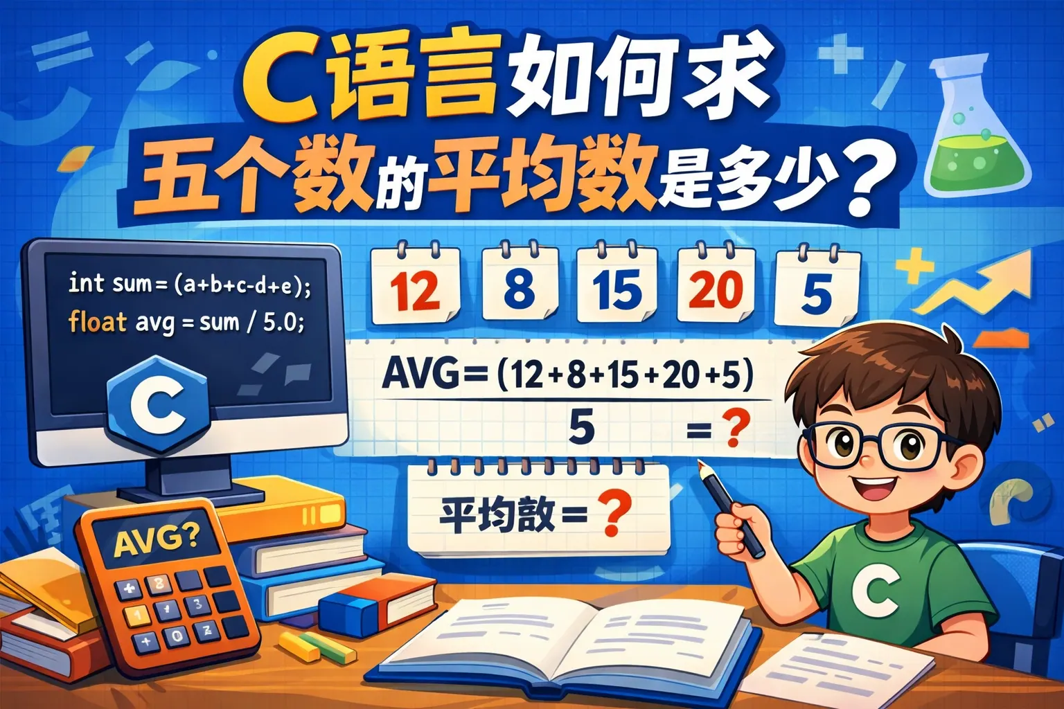 c语言如何求两5个数的平均数是多少