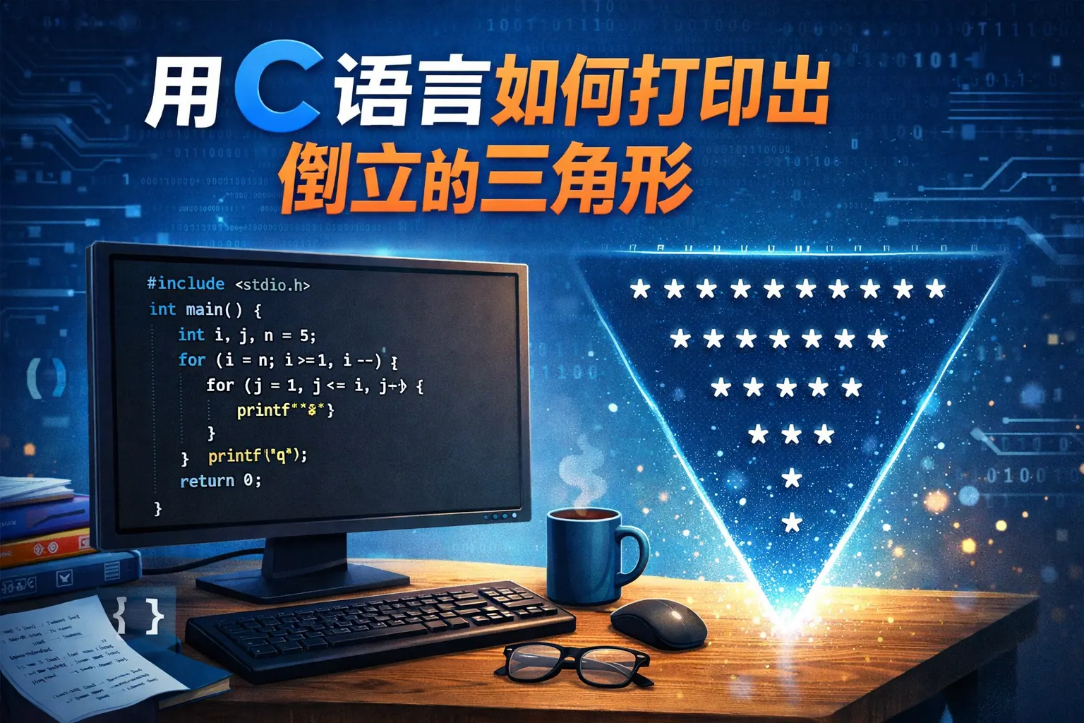 用c语言如何打印出倒立的三角形