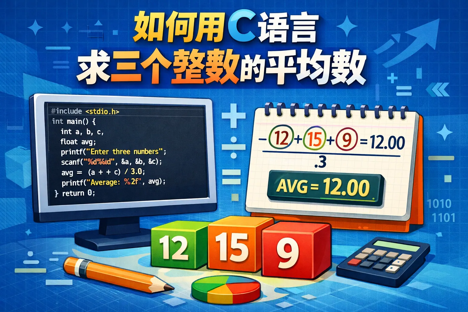 如何用c语言求3个数的平均数