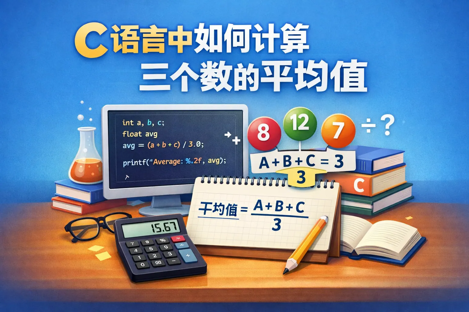 c语言中如何计算三个数的平均值
