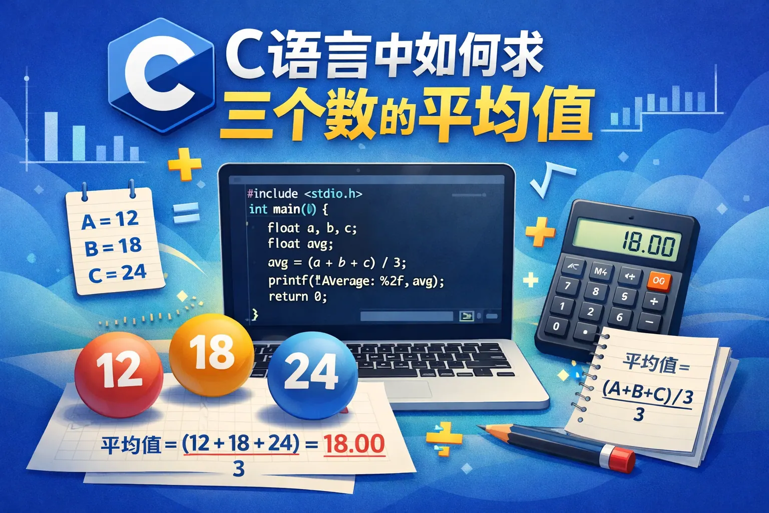 c语言如何算三个数的平均值