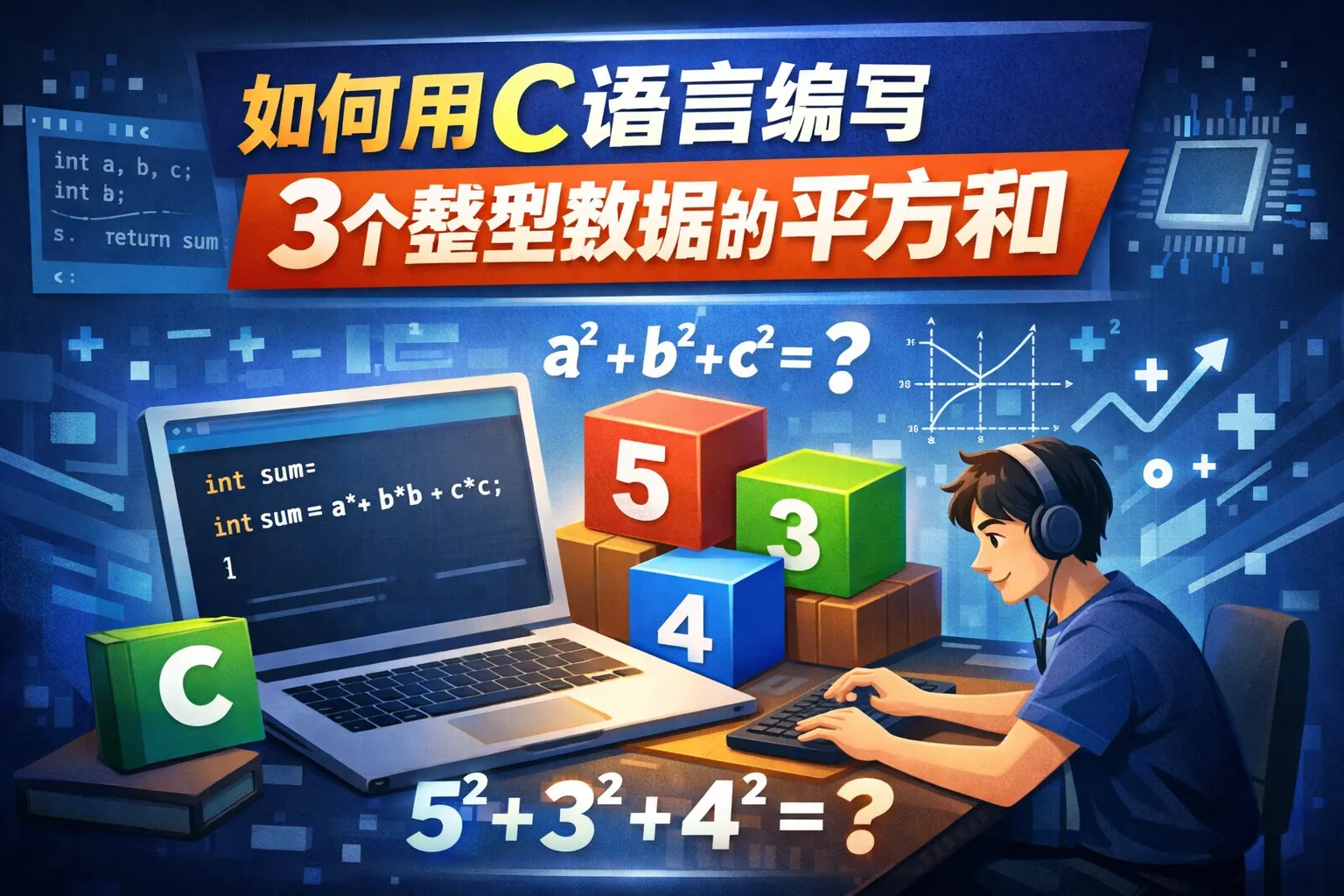 如何用c语言编写3个整型数据的平方和