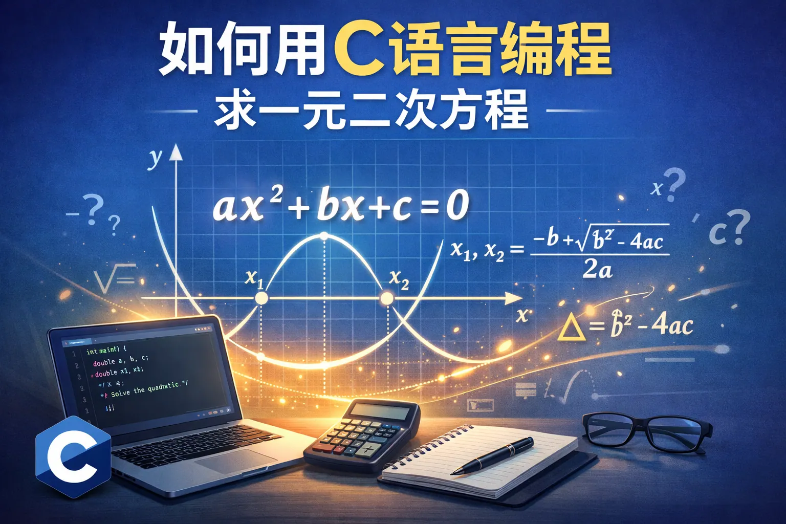 本文系统讲解了如何用 C 语言编程求解一元二次方程,从数学原理、判别式逻辑到完整代码实现与优化方式进行详细说明。通过标准公式转化为程序步骤,结合浮点精度处理与复数解扩展,实现了一个完整、健壮的一元二次方程求解程序。同时介绍了常见错误与调试技巧,并分析了 C 语言在数学计算中的应用价值与未来扩展方向,适合作为编程入门与算法思维训练的经典案例。