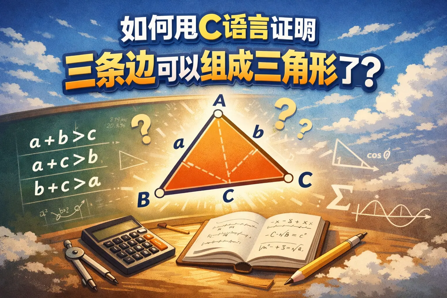 如何用 c语言证明三天边可以组成三角形了