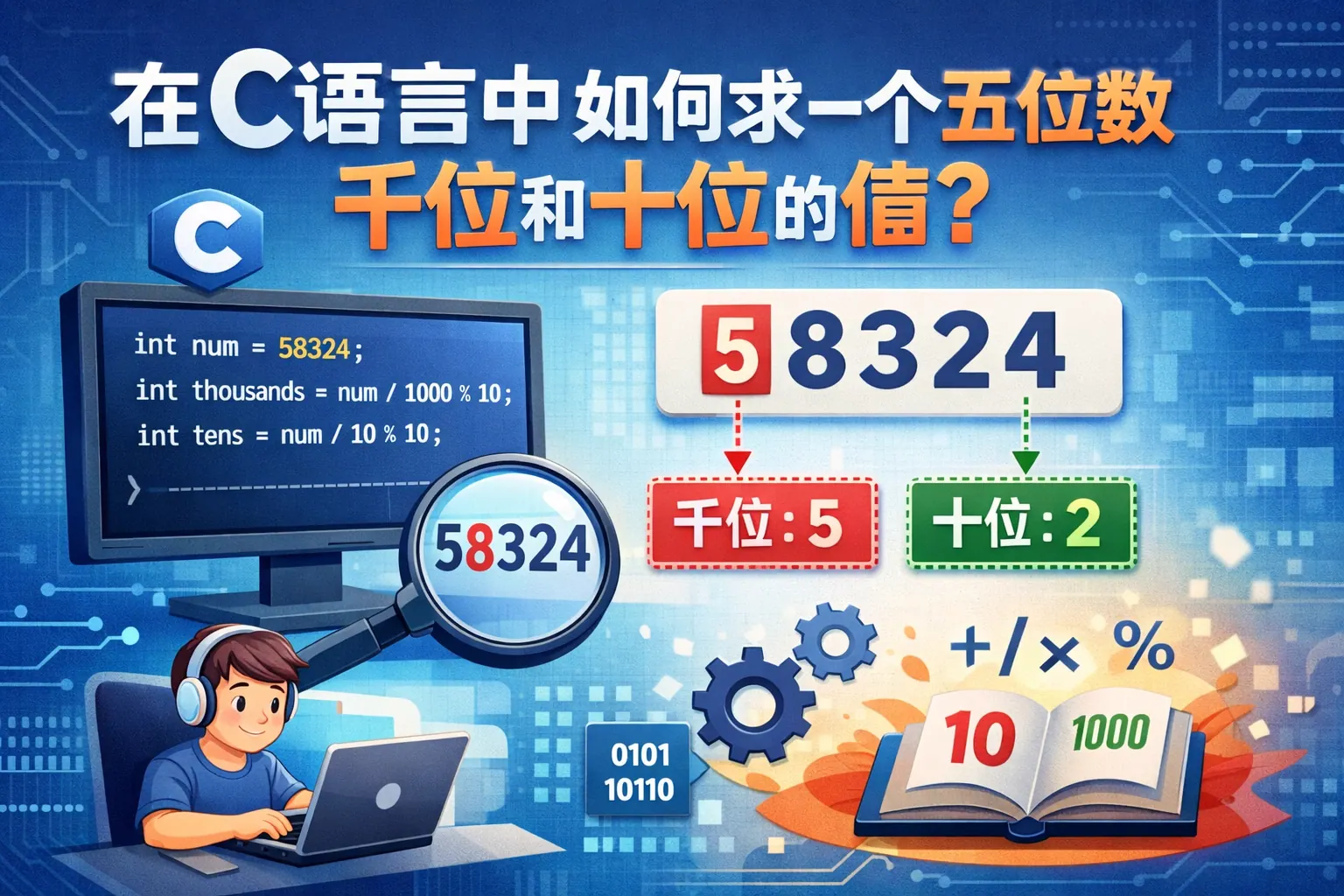 在C语言中如何求一个五位数千位和十位的值