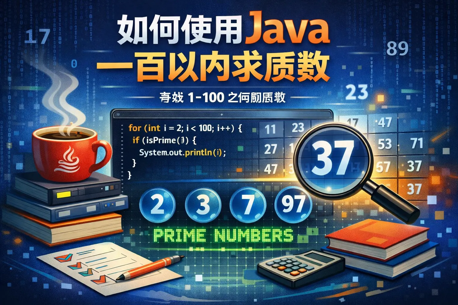 如何使用java一百以内求质数