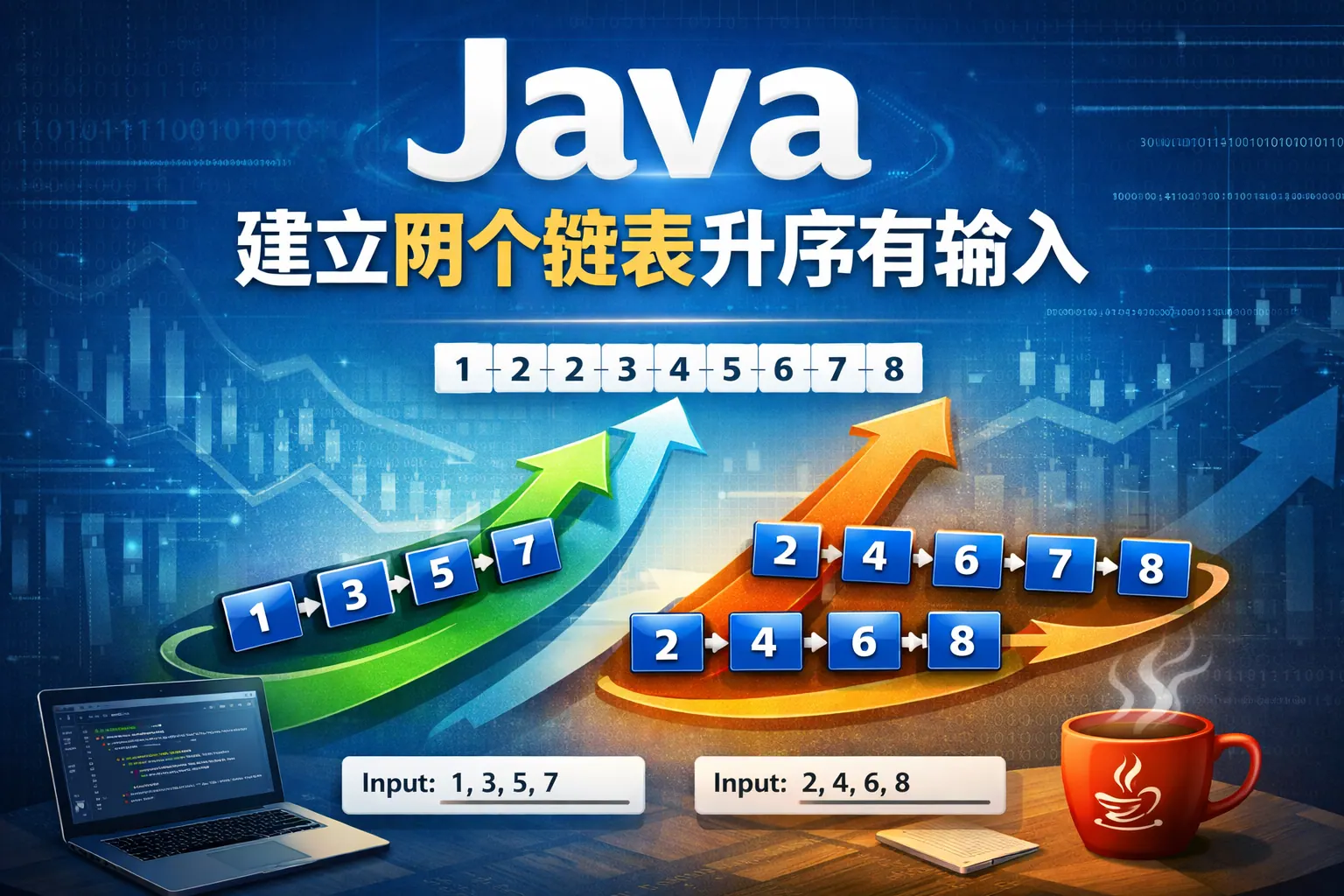 Java建立两个链表升序有输入