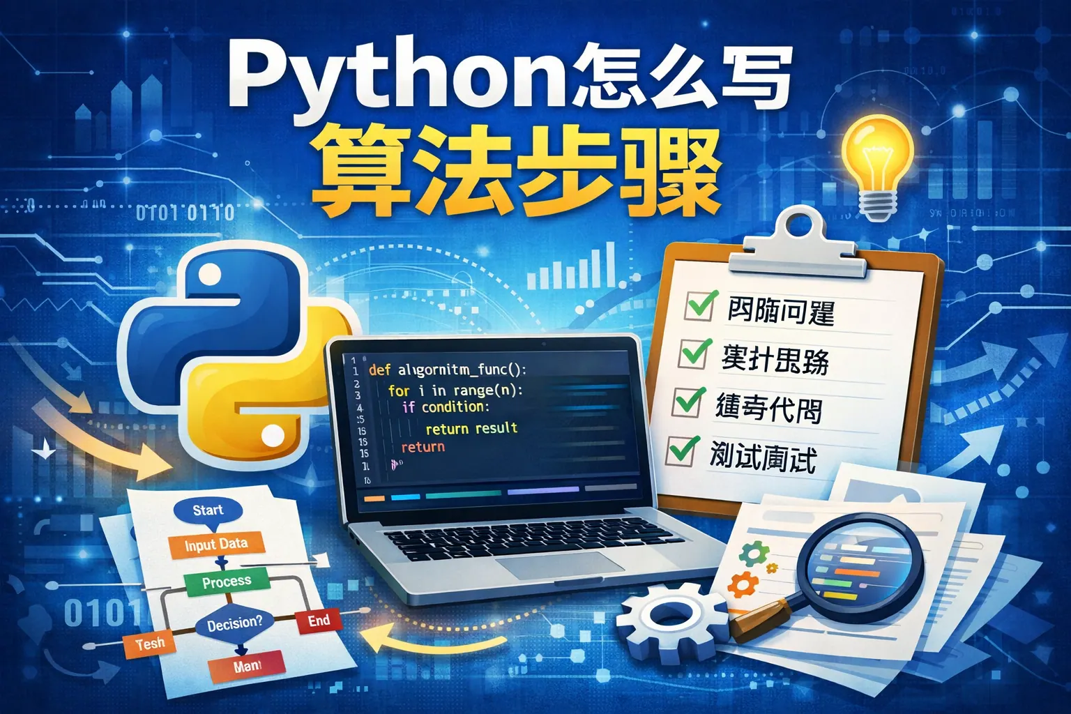 Python编写算法步骤的核心在于将问题结构化拆解为输入、处理逻辑与输出三部分,并通过清晰的流程控制与数据结构选择,将思路转化为代码。标准流程包括问题定义、逻辑拆解、数据结构选择、代码实现与复杂度优化。无论是排序、查找还是递归算法,都需要先用自然语言明确步骤,再用Python表达。真正的算法能力在于结构化思维与效率意识,而不仅是语法熟练度。
