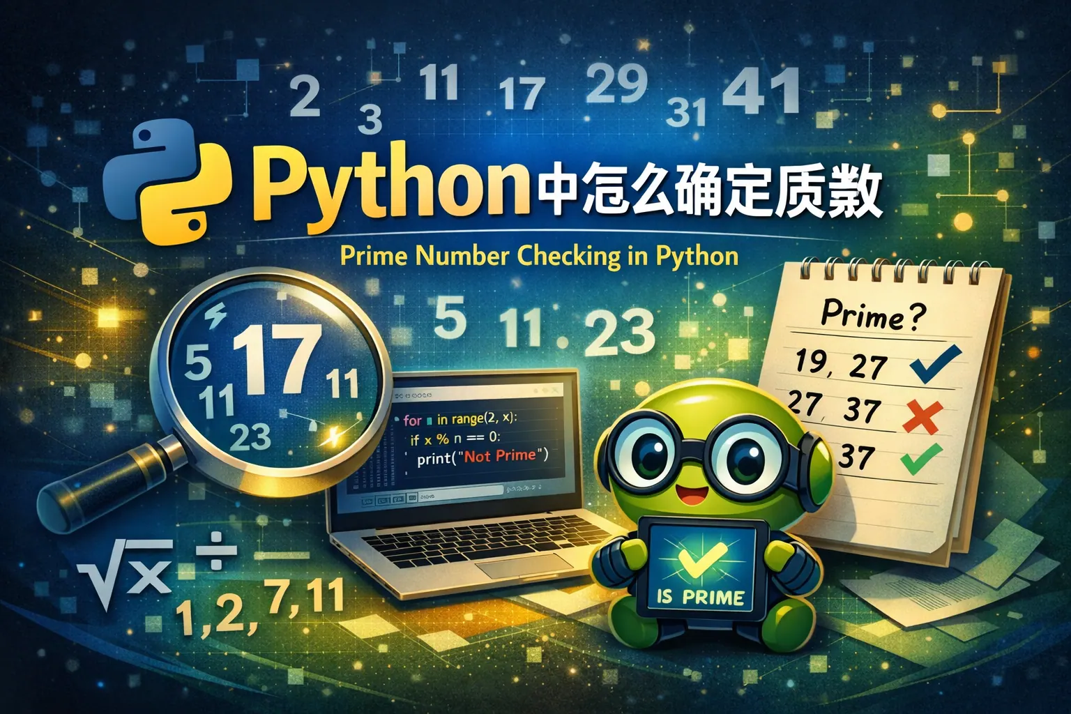 在 Python 中判断质数可以采用多种方法:基础试除法适合理解原理但效率较低;平方根优化法通过缩小检查范围显著提升性能,是日常开发最常用方案;若需批量生成质数,可使用筛法提高整体效率;面对超大整数,则应借助概率算法或专业库以兼顾速度与准确性。根据数据规模选择合适算法,才能在保证正确性的同时获得最佳性能表现。