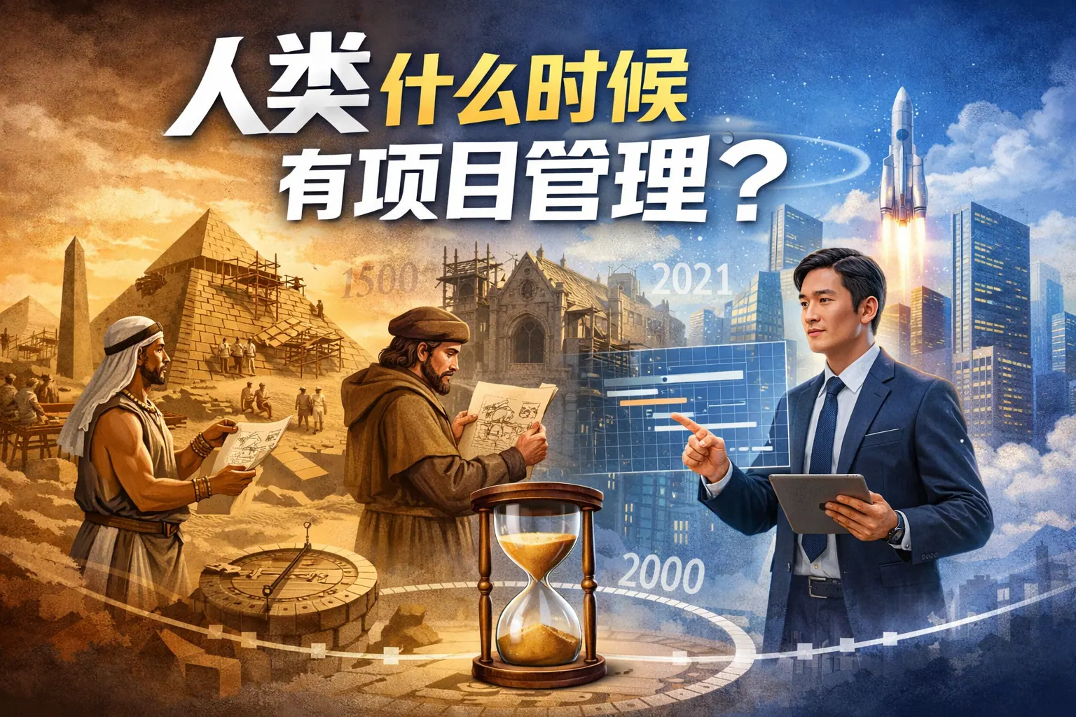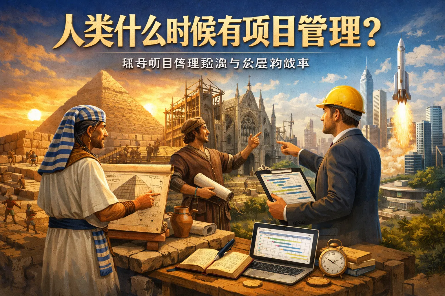 人类自古代文明时期就已具备项目管理的雏形,只要存在多人协作、明确目标与时间约束,就已进入项目管理实践阶段。从金字塔和长城等大型工程,到工业革命时期的科学管理,再到20世纪形成的系统化理论与现代敏捷方法,项目管理不断演化升级。它伴随社会复杂度提升而发展,是推动文明进步与组织协作效率提升的重要能力,未来将更加数据化与智能化。