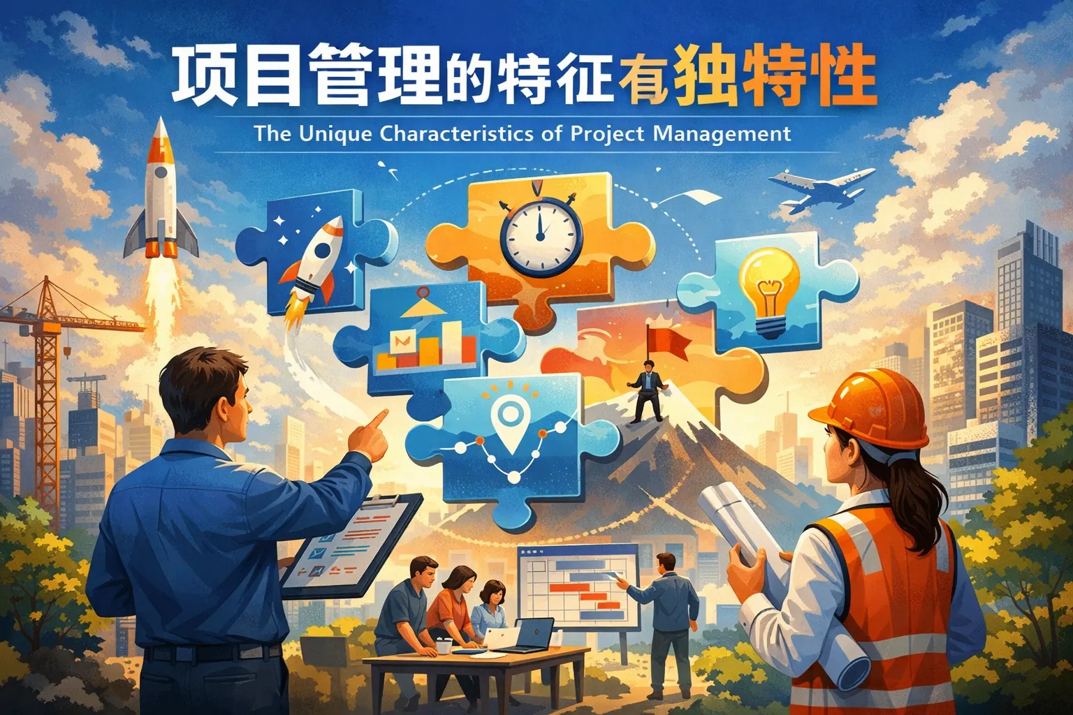 项目管理的基本特征包括目标导向性、一次性与独特性、阶段性生命周期结构、跨职能协作性、资源约束性、风险不确定性、系统性以及成果交付导向,并逐步呈现与组织战略高度关联的趋势。这些特征使项目管理区别于日常运营管理,强调在有限资源和不确定环境中,通过系统化方法实现明确成果与价值交付。未来项目管理将更加数据化与战略化。