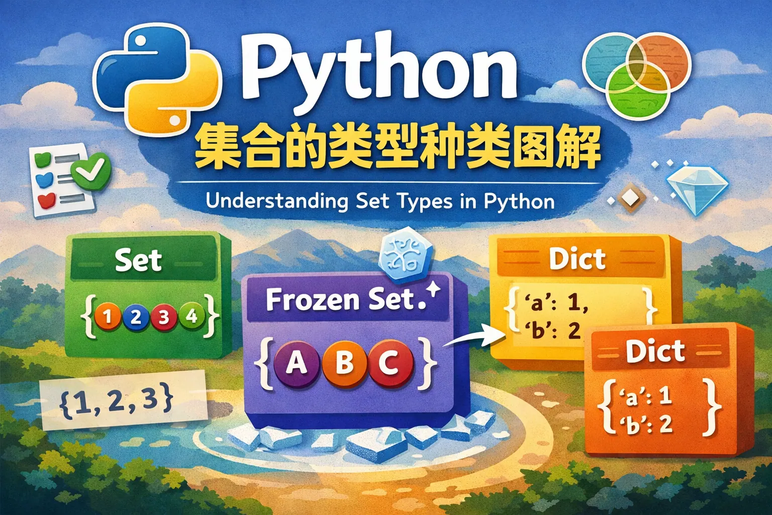 本文系统讲解了 Python 中集合类型的种类与结构关系,明确指出 Python 官方仅提供 set 与 frozenset 两种集合类型,并从类型层级、可变性、底层实现和使用场景等角度进行了“图解式”解析。文章强调集合类型以无序与唯一性为核心语义,适用于成员判断和集合运算,并通过对比表和关系说明帮助读者理解集合与其他容器的本质差异,最终总结了集合类型在性能与未来应用中的长期价值。