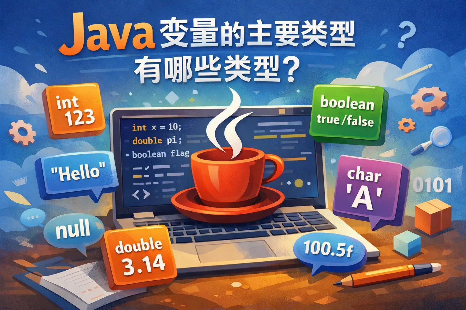 Java 的基础变量类型主要分为基本数据类型和引用数据类型两大类。基本数据类型包括八种,用于直接存储数值或字符,具有固定内存占用和高执行效率;引用数据类型则用于存储对象的引用地址,支持复杂结构与面向对象建模。理解不同变量类型在取值范围、内存模型和使用场景上的差异,是编写高质量 Java 程序的关键基础,也是后续学习集合、并发与框架原理的重要前提。