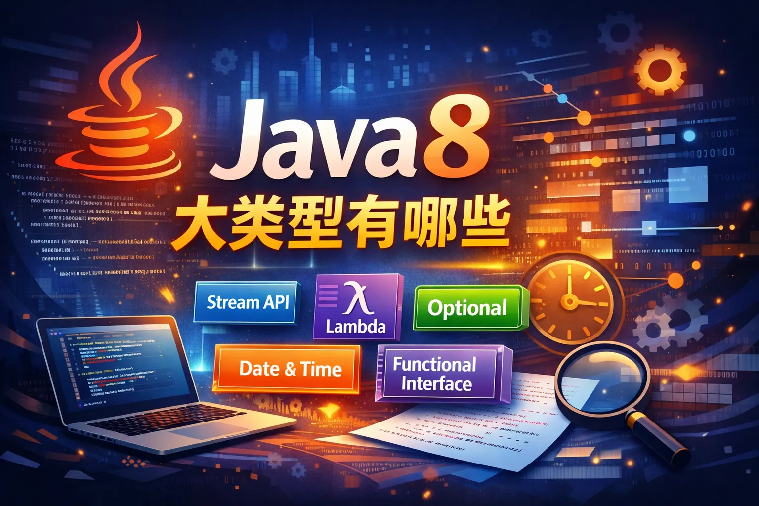 Java 8 中所谓的“大类型”,并非新增语法概念,而是对现有类型体系的系统化理解与扩展。它主要包括基本数据类型、引用类型、包装类型、字符串、函数式接口、集合与泛型、时间日期类型以及 Optional 等。Java 8 通过 Lambda、Stream 和新的时间 API,让类型不仅承载数据,也承载行为和语义,从而提升了表达能力与工程可维护性。理解这些类型及其边界,是正确使用 Java 8 并构建高质量系统的基础。