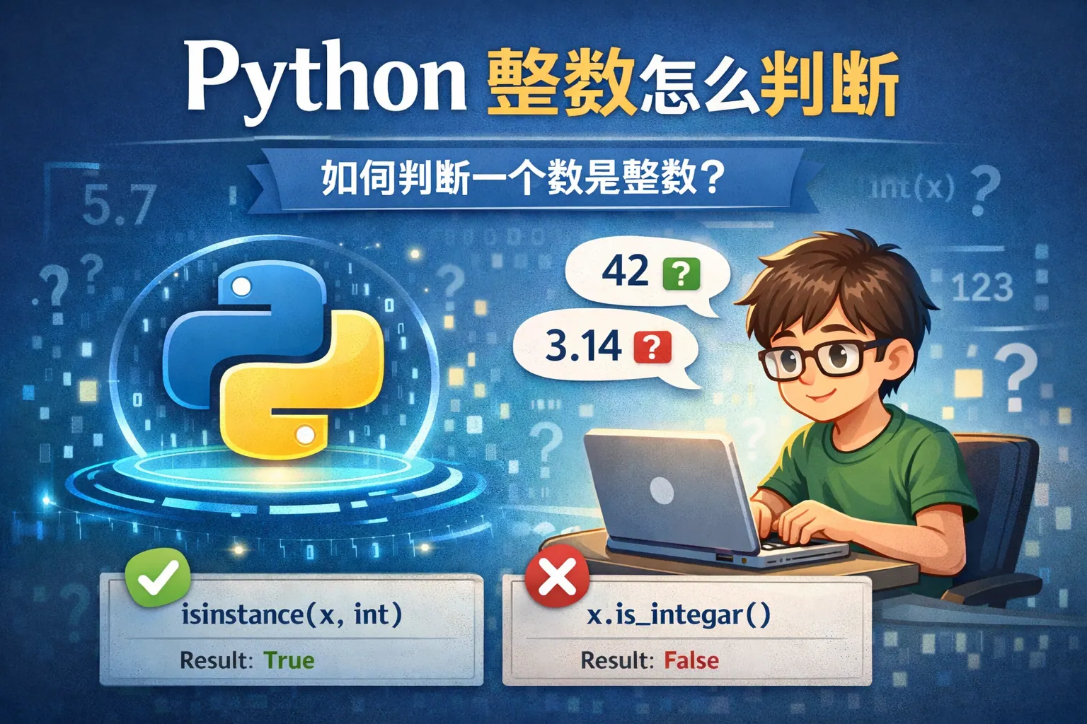 Python 判断整数主要通过 isinstance() 判断变量类型,通过 int() 结合异常处理判断字符串是否为整数,并使用 float.is_integer() 判断浮点值是否为整数数值。不同场景应选择不同方式,其中 int() + try/except 是最通用、最安全的方法。同时需注意布尔值继承、浮点精度误差以及字符串校验限制等问题,才能写出健壮可靠的代码。
