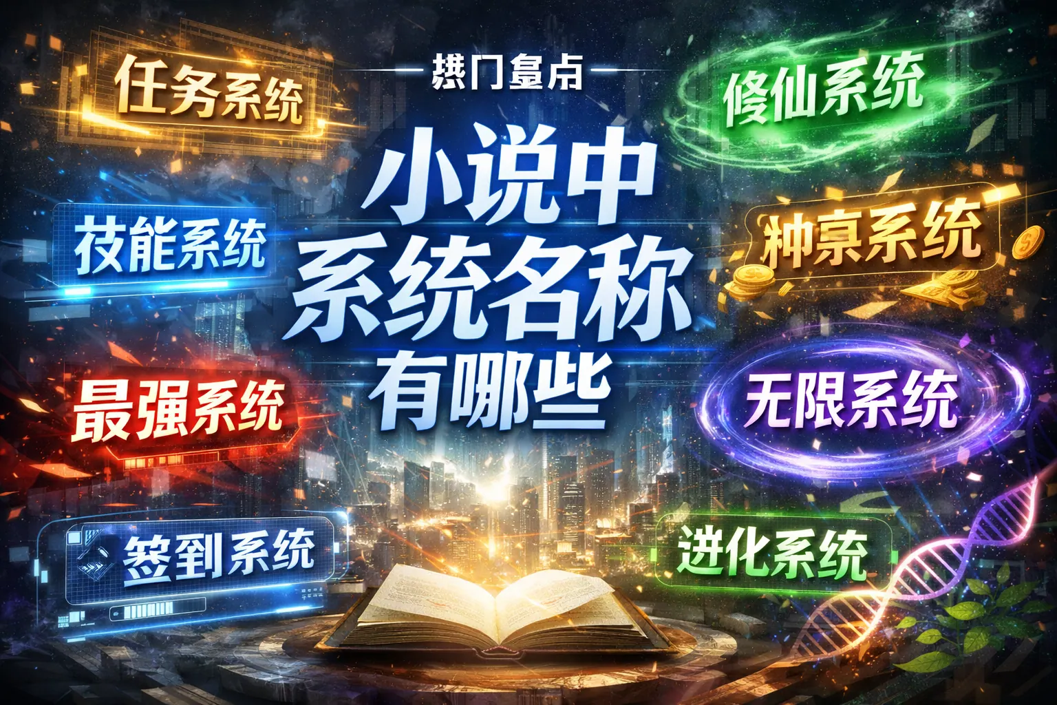 小说中的系统名称通常围绕升级、签到、任务、万界等核心功能展开,既承担剧情推进作用,也影响读者第一印象。常见类型包括升级成长类、签到奖励类、任务驱动类和诸天万界类,不同题材对系统名称风格有明显差异。一个优秀的系统名称应具备功能明确、题材匹配、易传播和可延展等特点,同时避免同质化堆砌。随着读者审美升级,系统命名正从夸张爽点转向机制细分与世界观融合方向发展。