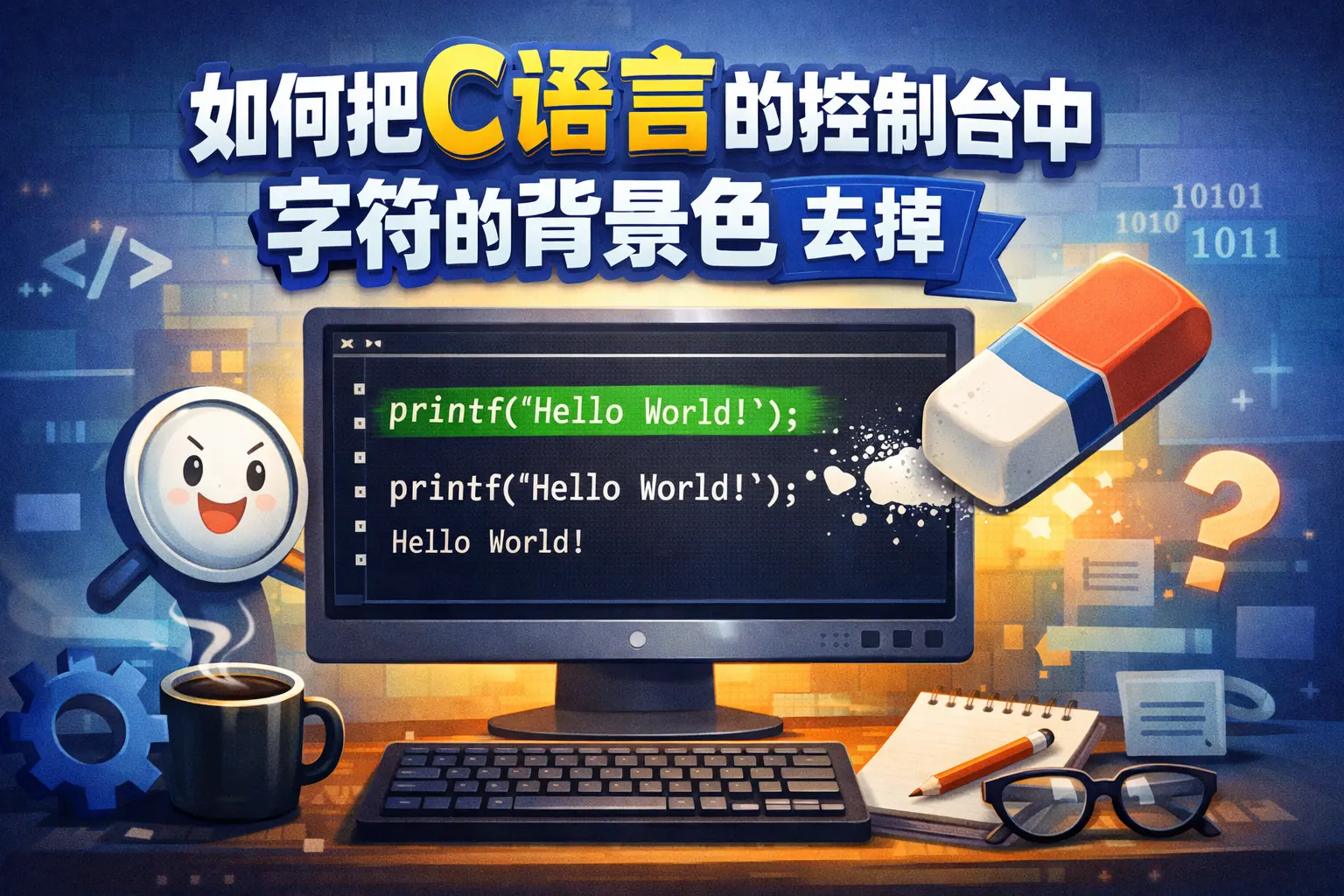 如何把C语言的控制台中字符的背景色去掉