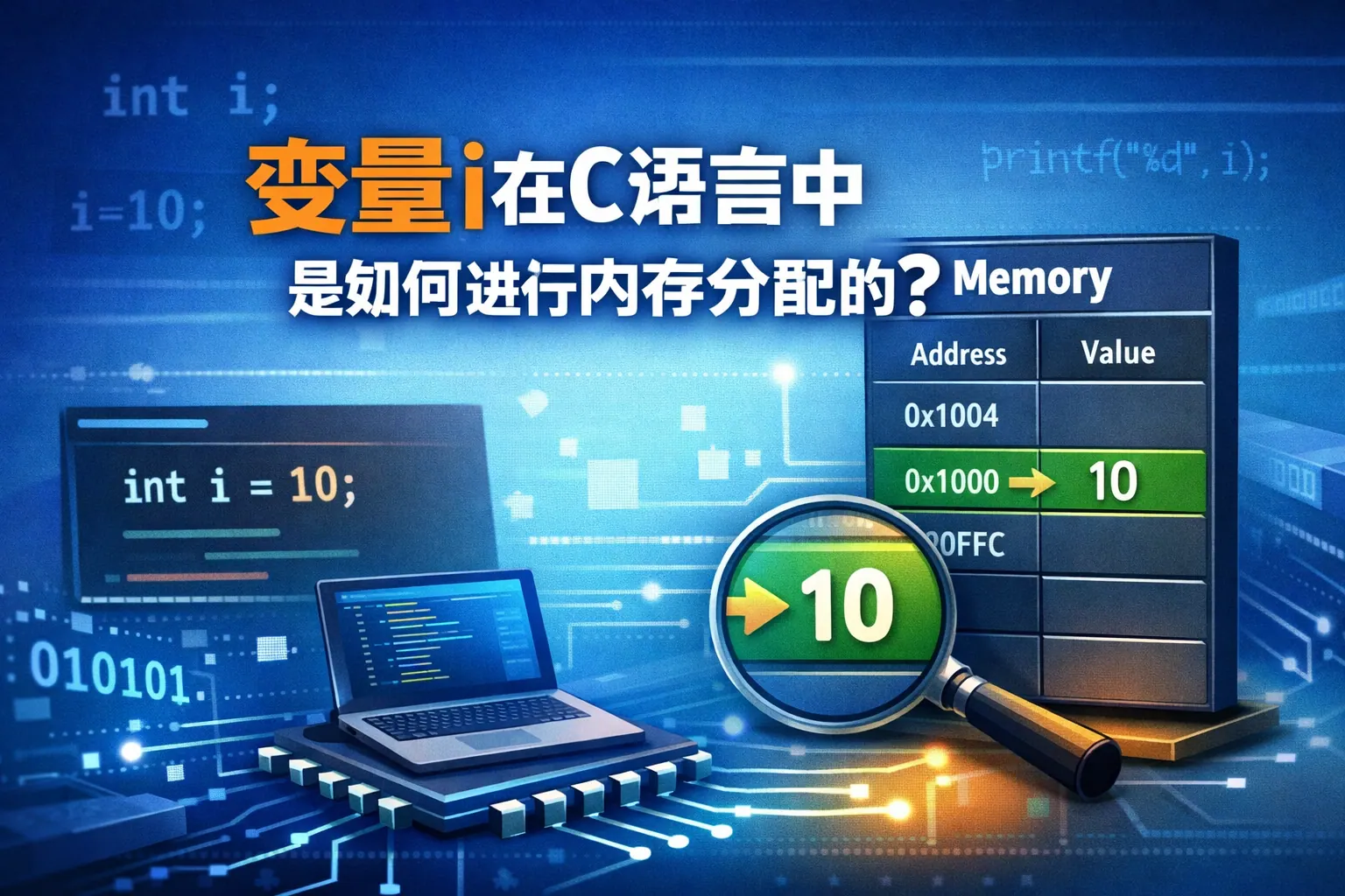 变量i在C语言中是如何进行内存分配的