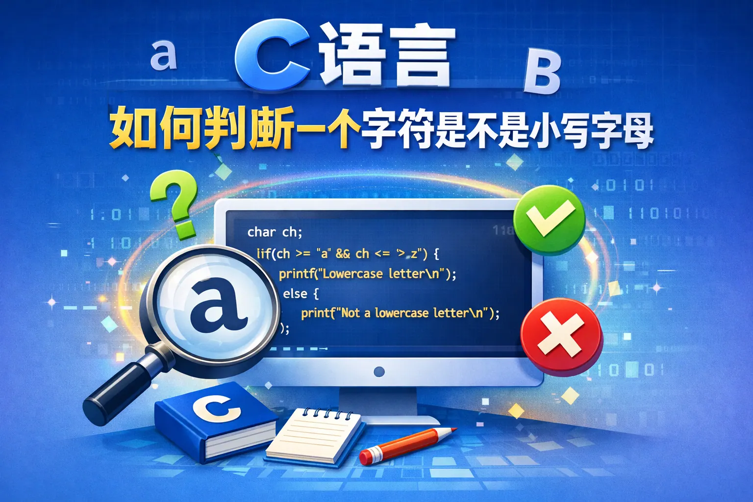 c语言如何判断一个字符是不是小写字母