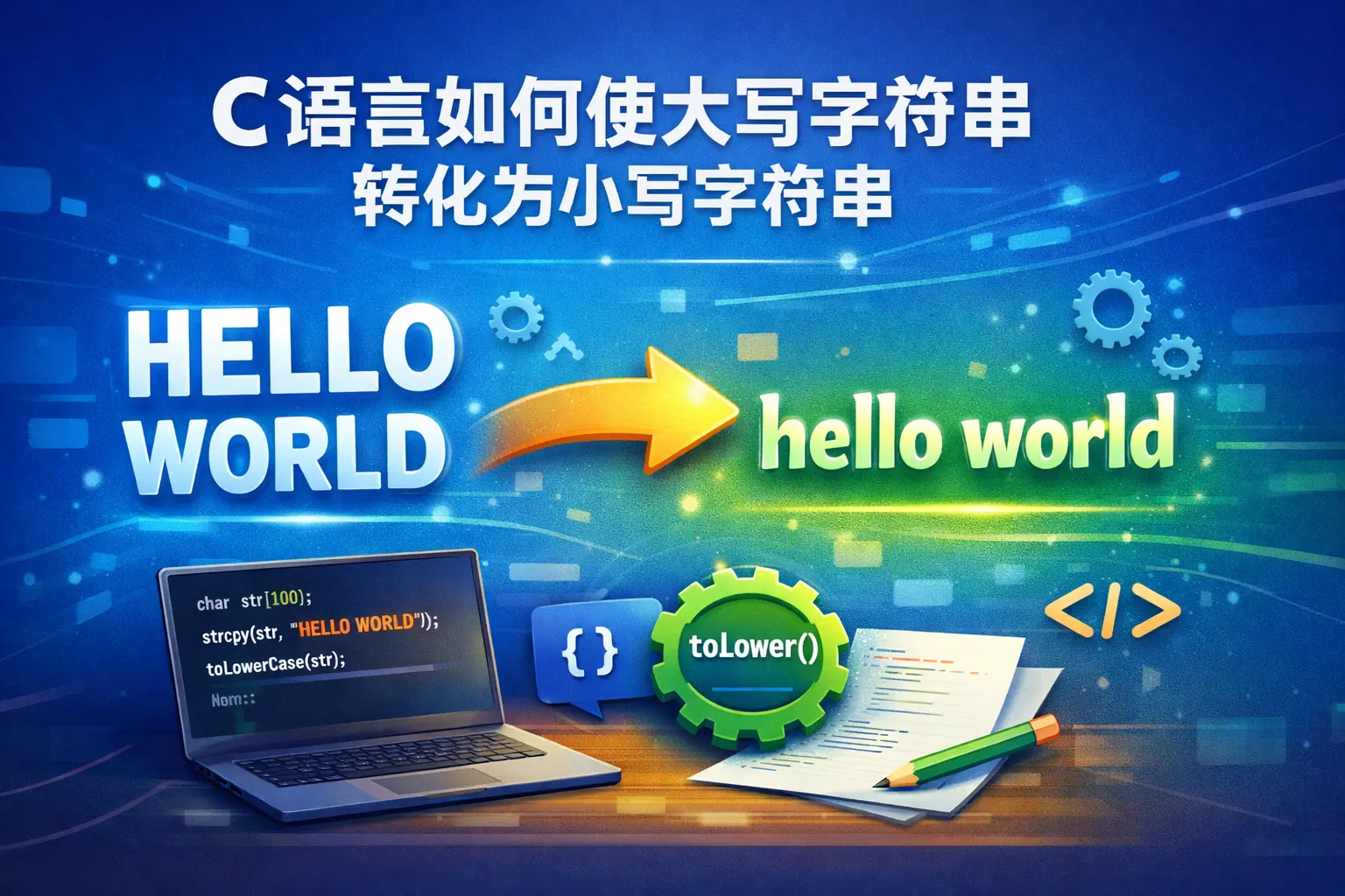 c语言如何使大写字符串转化为小写字符串