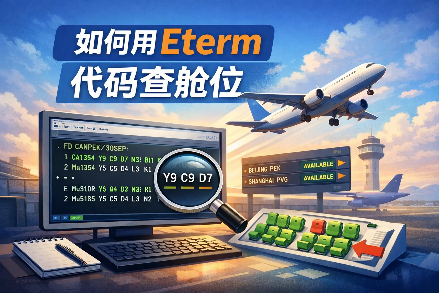 使用Eterm代码查询舱位的核心在于熟练掌握AV、FD等查询指令,正确输入航线与日期,并准确解读舱位代码及其状态符号。舱位后数字代表剩余座位数量,0表示不可订,9表示9个及以上。理解不同舱位等级与价格逻辑,结合航空公司收益管理机制判断库存变化,是提高出票效率与减少误操作风险的关键。随着航空收益管理不断精细化,掌握Eterm舱位查询能力仍是票务从业者的重要基础技能。