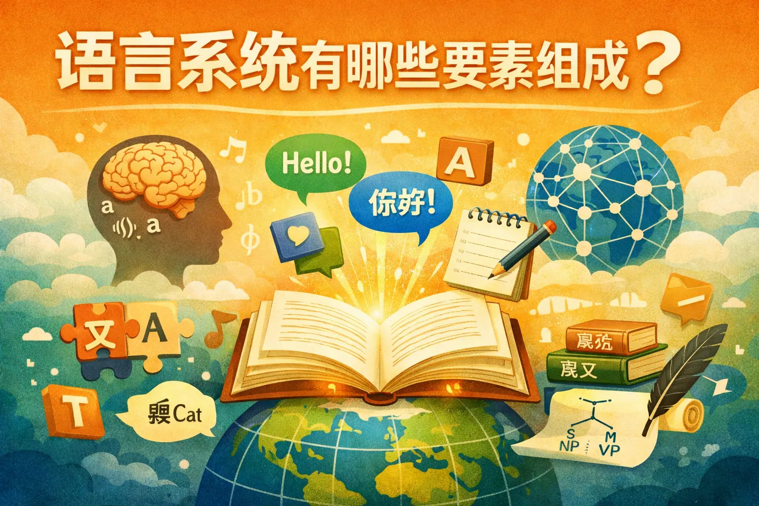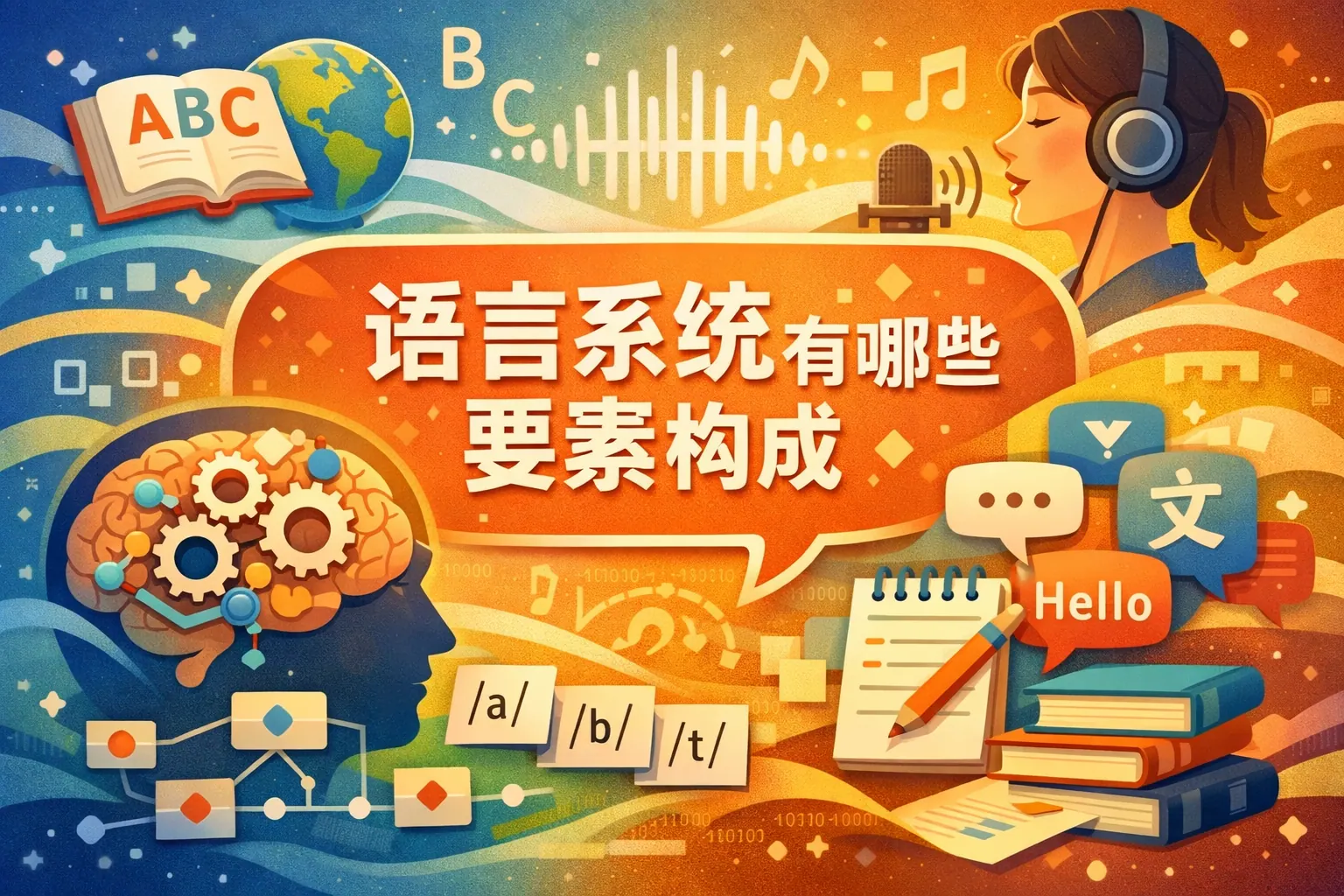 语言系统主要由语音、词汇、语法、语义和语用五大要素构成,并在认知机制与社会文化环境中运行。这五个层级从声音形式到实际交际功能逐层递进,构成完整的语言结构框架。语音提供物质基础,词汇承载意义,语法建立结构规则,语义组织意义关系,语用确保情境适配。现代语言研究已将这一体系拓展至人工智能与认知科学领域,显示语言系统既是结构系统,也是思维与社会互动的重要工具。理解其构成,有助于提升语言学习、跨文化交流及技术应用能力。