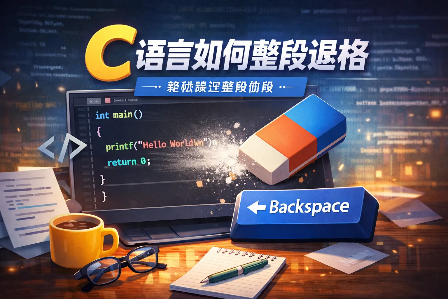c语言如何整段退格